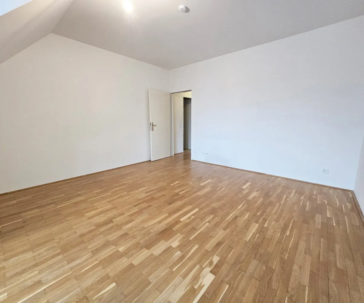 Diese sonnige und geräumige 3 Zimmer Dachgeschosswohnung mit knapp 91m², erstreckt sich über 2 Ebenen: