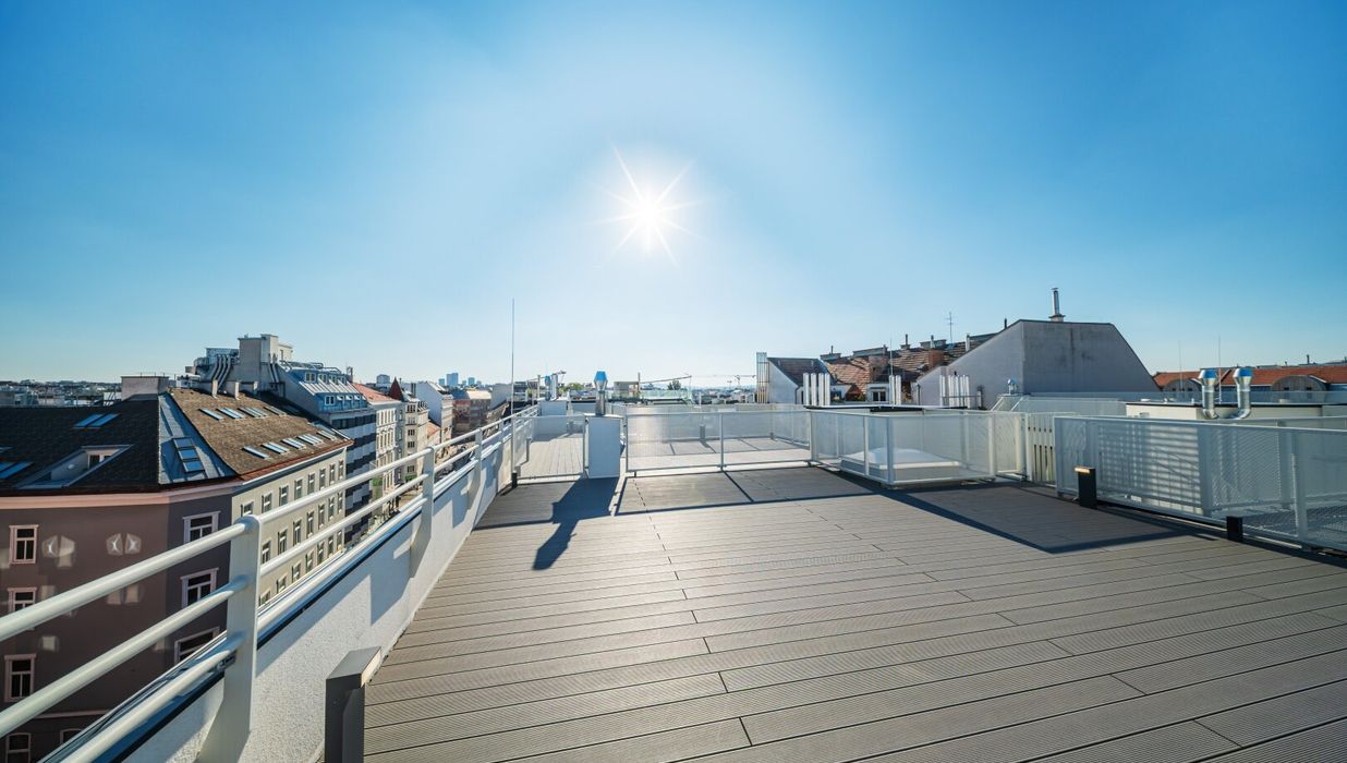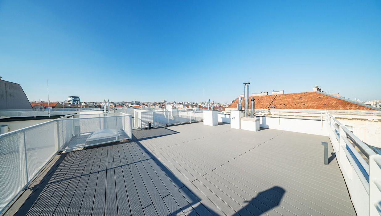 Die großzügige 4-Zimmer-Wohnung befindet sich im 2. Dachgeschoss und bietet eine Wohnfläche von ca. 152 m² sowie eine Terrasse mit ca. 12 m² und eine private Dachterrasse mit ca. 55 m². Die Raumaufteilung gliedert sich wie folgt: