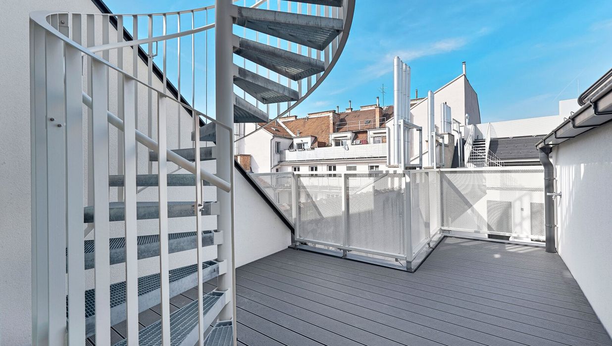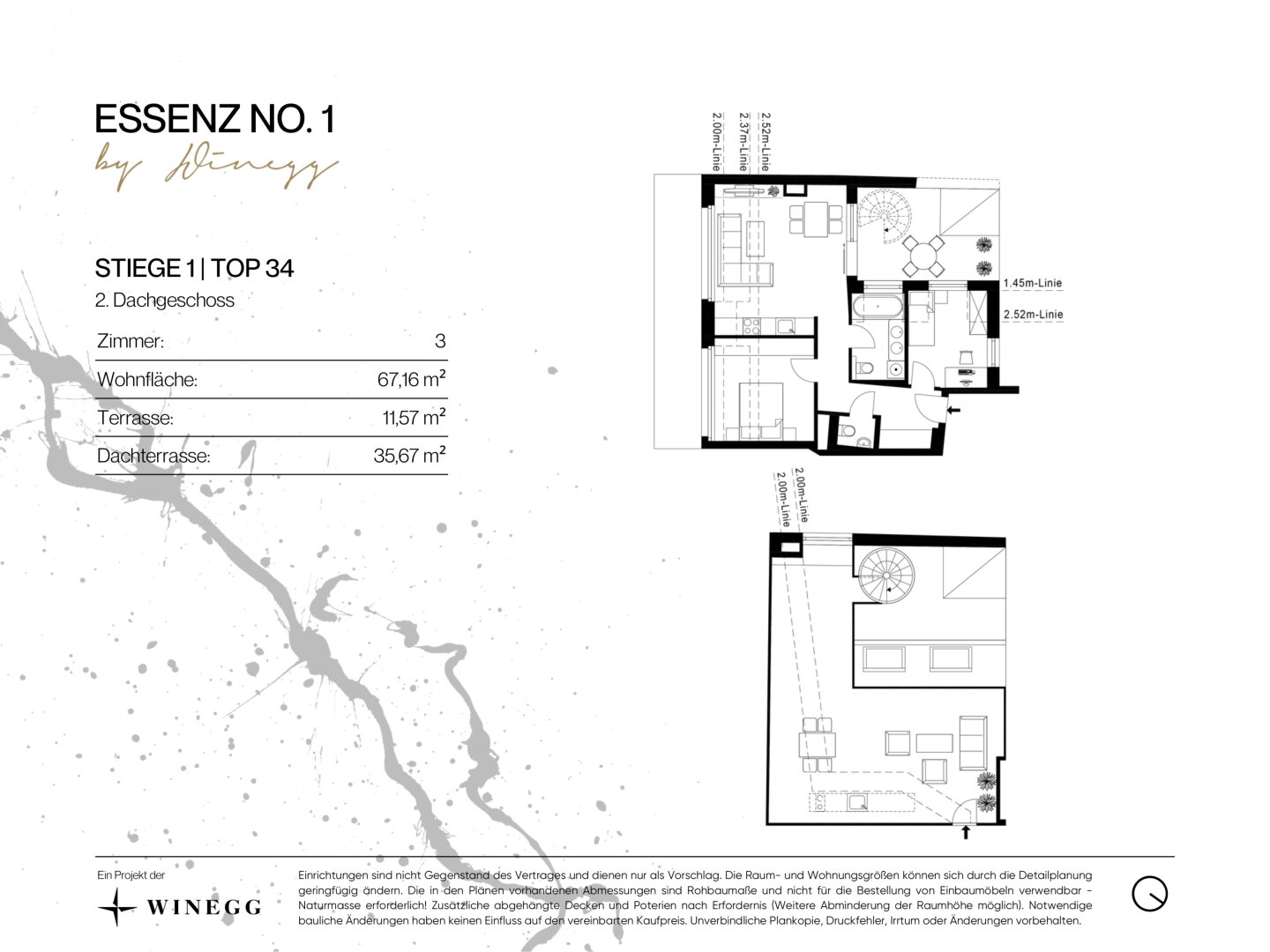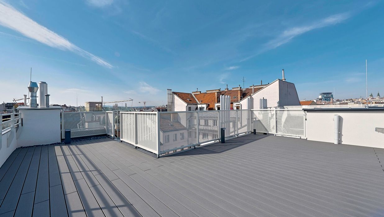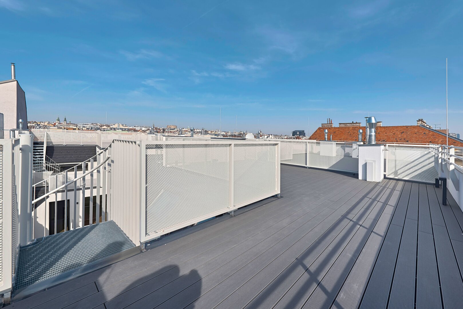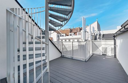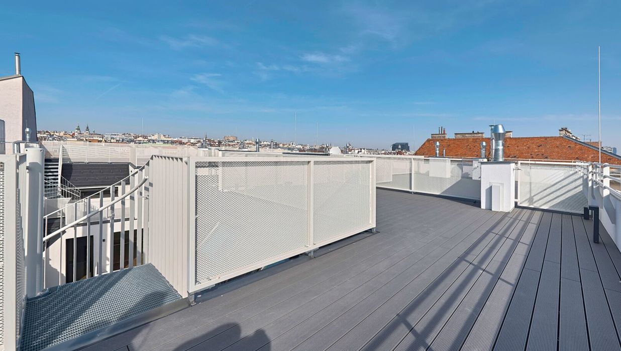 Die 3-Zimmer-Wohnung befindet sich im 2. Dachgeschoss und bietet eine Wohnfläche von ca. 67 m² sowie eine Terrasse mit ca. 12 m² und eine private Dachterrasse mit ca. 36 m². Die Raumaufteilung gliedert sich wie folgt: