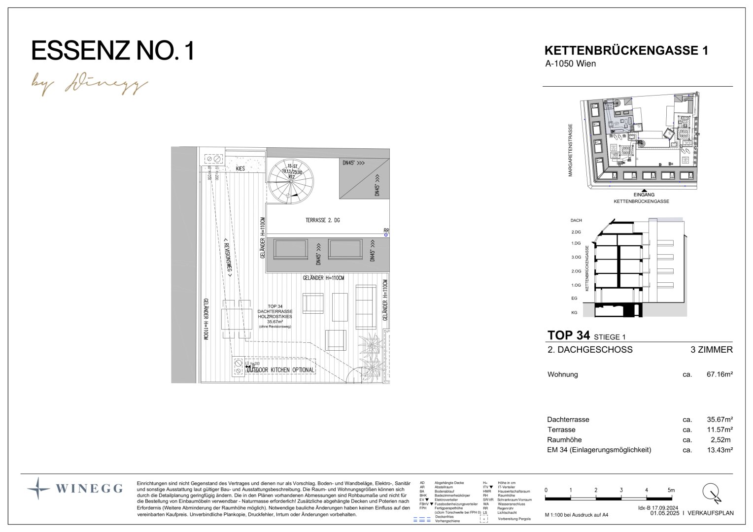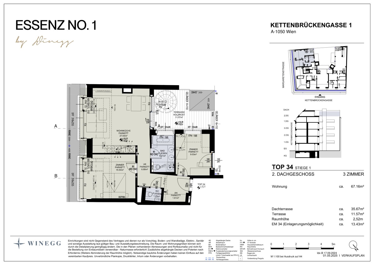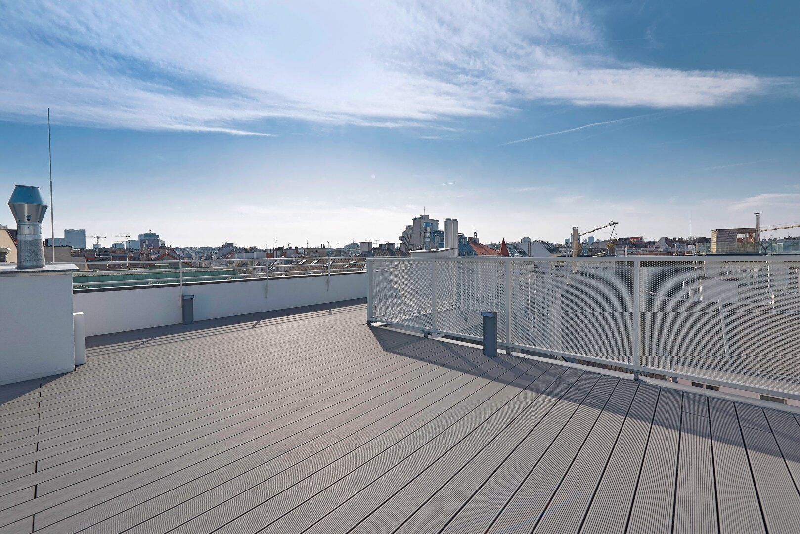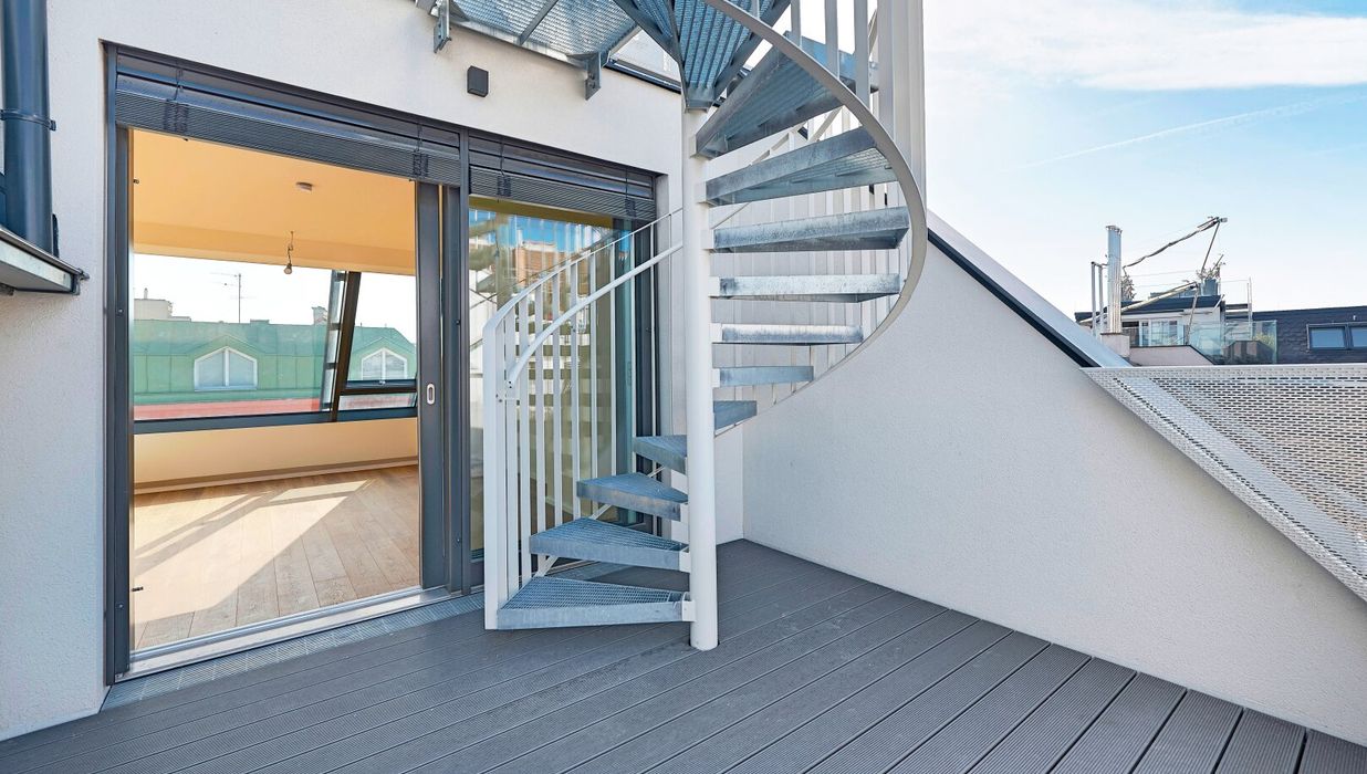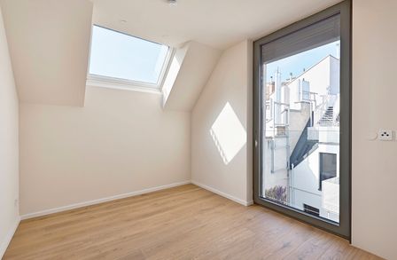 Die 3-Zimmer-Wohnung befindet sich im 2. Dachgeschoss und bietet eine Wohnfläche von ca. 67 m² sowie eine Terrasse mit ca. 12 m² und eine private Dachterrasse mit ca. 36 m². Die Raumaufteilung gliedert sich wie folgt:
