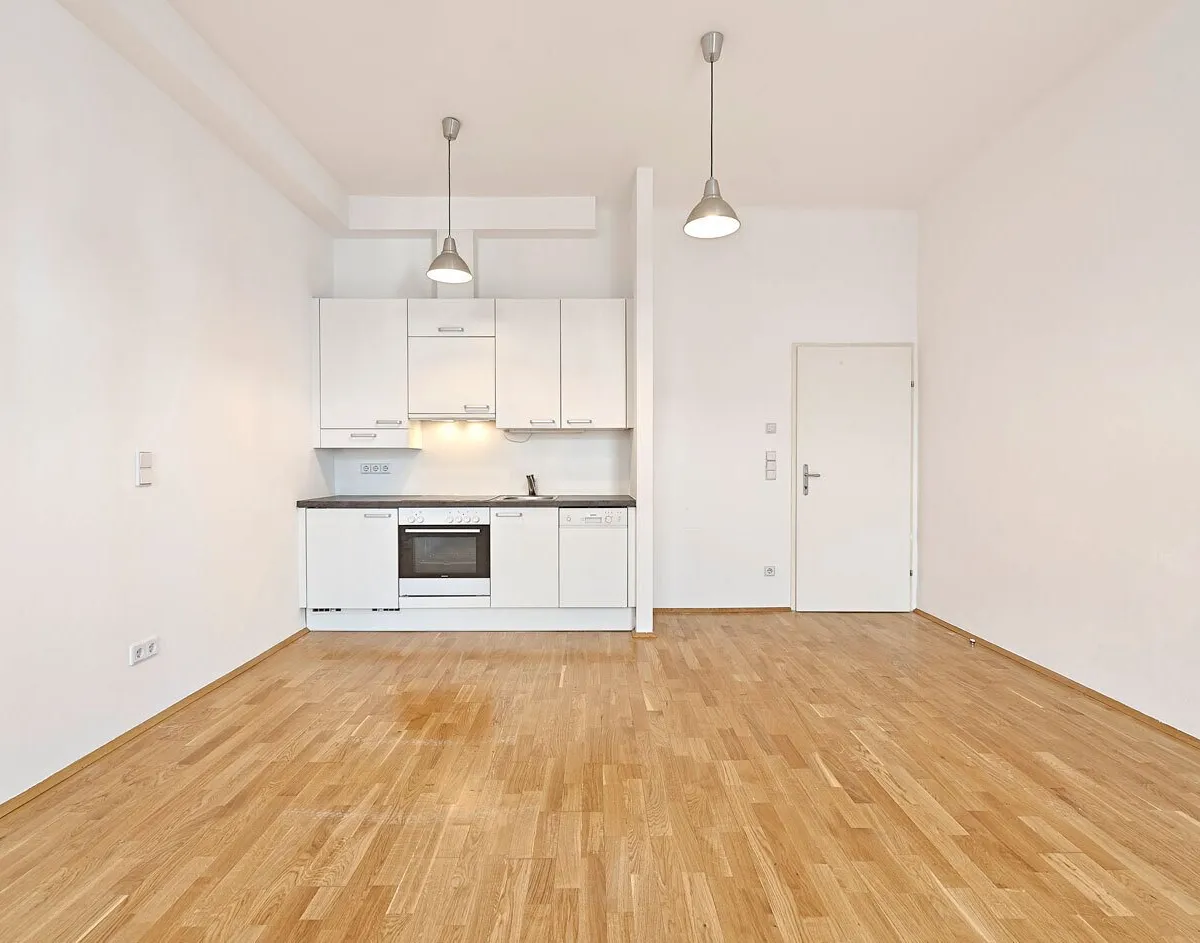 Die im ersten Liftstock befindliche Zwei- Zimmer-Einheit verfügt über eine Wohnfläche im Ausmaß von ca. 55 qm . Die Wohnung in ruhiger Innenhoflage bietet einen sehr guten Grundriss und Grünblick.