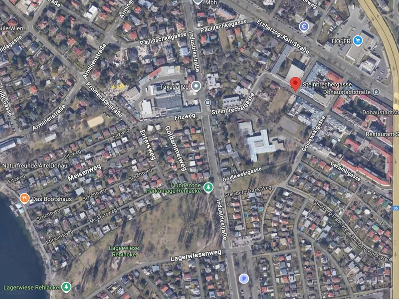 Die Liegenschaft befindet sich in der Steinbrechergasse, in einer ruhigen Wohngegend mit guter öffentlicher Verkehrsanbindung (Straßenbahnlinie 25, Autobuslinien 26A und 93A, Bahnhof Erzherzog-Karl-Straße ). In unmittelbarer Nähe befinden sich ein Arzt, eine Apotheke, eine Schule und ein Kindergarten. Auch Einkaufsmöglichkeiten wie ein Supermarkt und eine Bäckerei sind schnell zu erreichen. Für größere Einkäufe gibt es das Shopping Center "Donau Zentrum" in der Nähe.