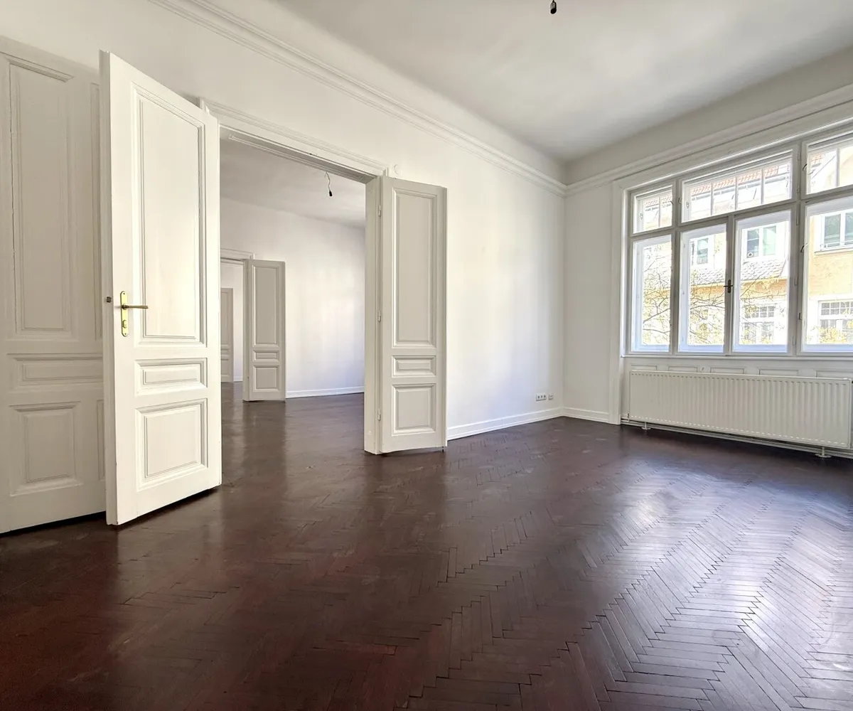 Die Wohnung begeistert mit insgesamt fünf großzügige Zimmern sowie einem zusätzlichen Kabinett und versprüht authentisches Wiener Altbauflair . Stilvolle Flügeltüren , original erhaltene Holzkastenfenster und edle Parkettböden verleihen den Räumlichkeiten einen ganz besonderen Charme und spiegeln den Charakter der Jahrhundertwende auf eindrucksvolle Weise wider.