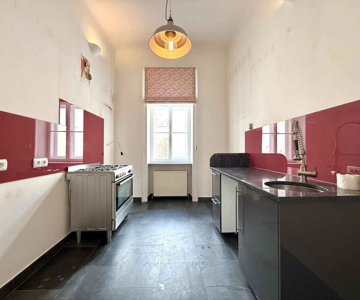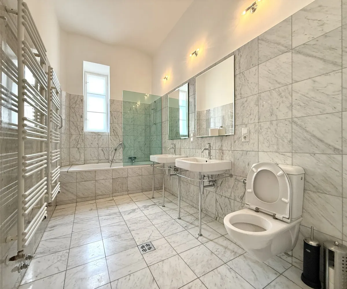 Die Wohnung verfügt weiters über ein großzügiges Badezimmer (mit WC und Fenster), ein zusätzliches separates WC , einen weitläufigen dimensionierten Küchenbereich sowie einen praktischen Schrankraum . Ein kleiner, hofseitig gelegener Balkon sowie ein gemütlicher Kamin schaffen zusätzliche Wohnqualität und unterstreichen den besonderen Charakter dieser Immobilie. Ebenfalls sind Vorkehrungen für den Anschluss einer Klimaanlage bereitgestellt. Eine Rarität im Wiener Altbau!