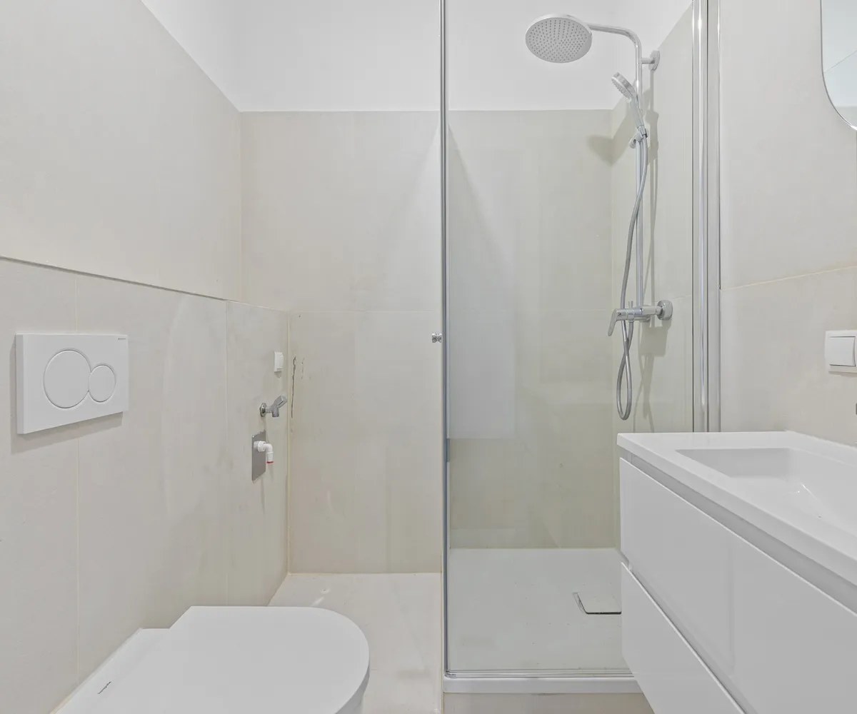 Neues Badezimmer mit geräumiger Dusche und WC
