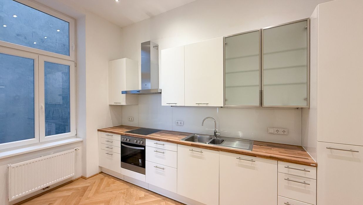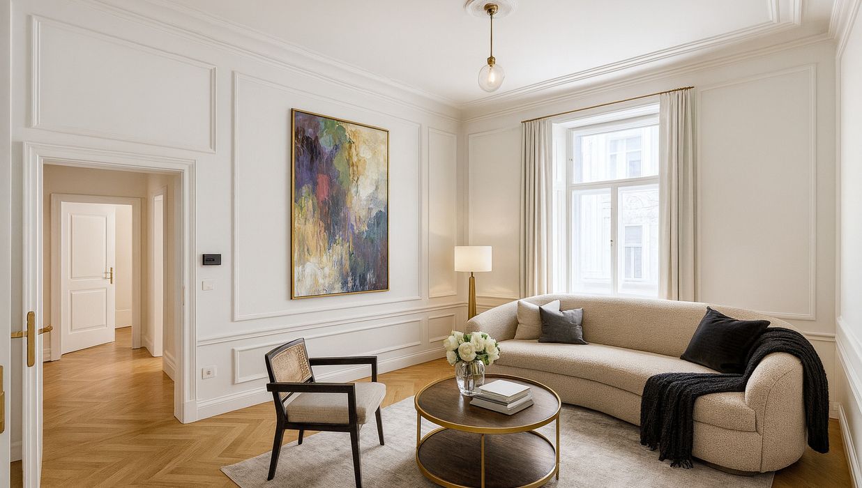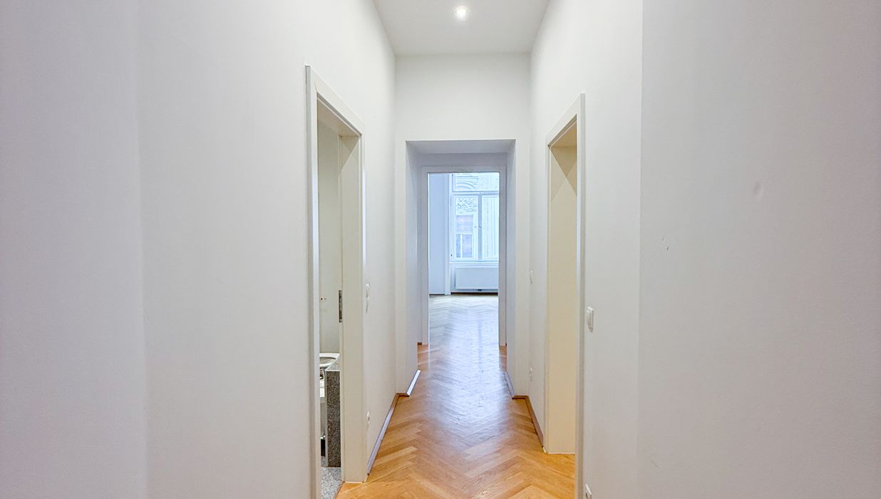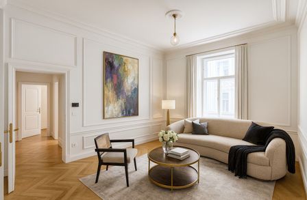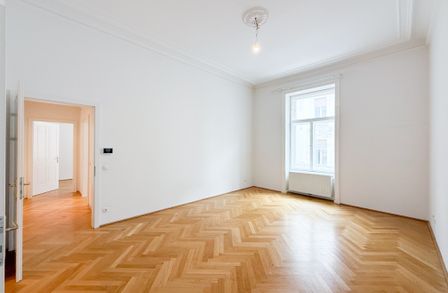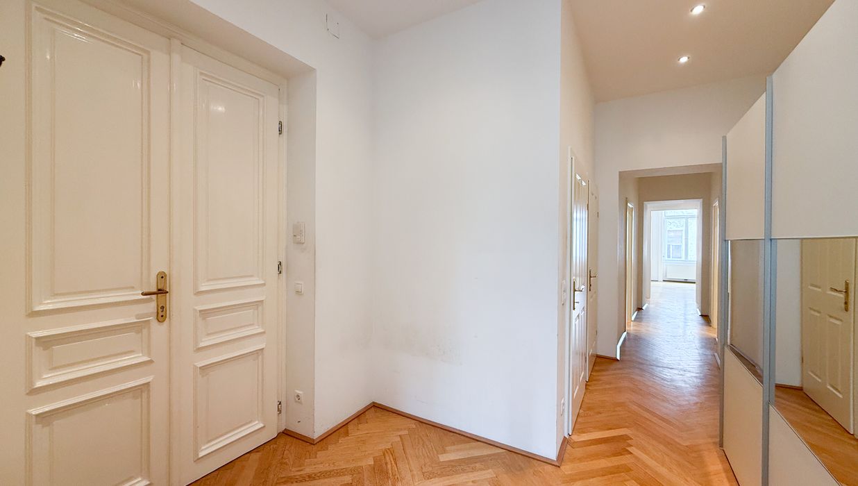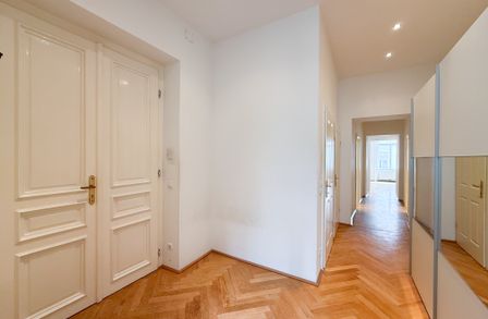 In einer der gefragtesten Wohnlagen des 4. Bezirks präsentiert sich diese großzügige ca. 105 m² große Altbauwohnung als stilvolles Zuhause mit klassischer Eleganz und modernem Wohnkomfort. Die Wohnung befindet sich im 1. Obergeschoss eines repräsentativen Gründerzeithauses und vereint hochwertiges Altbauflair mit einer zeitlos gepflegten Ausstattung.