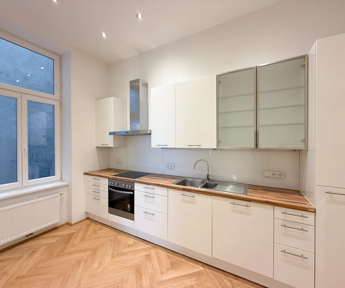 Diese rund 91 m² große Altbauwohnung bietet klassisches Wiener Wohnflair kombiniert mit moderner Ausstattung. Gelegen in einem repräsentativen Gründerzeithaus im 4. Bezirk, überzeugt sie durch hohe Räume, elegante Flügeltüren, gepflegten Fischgrätparkett und große Kastenfenster, die für viel Licht sorgen.