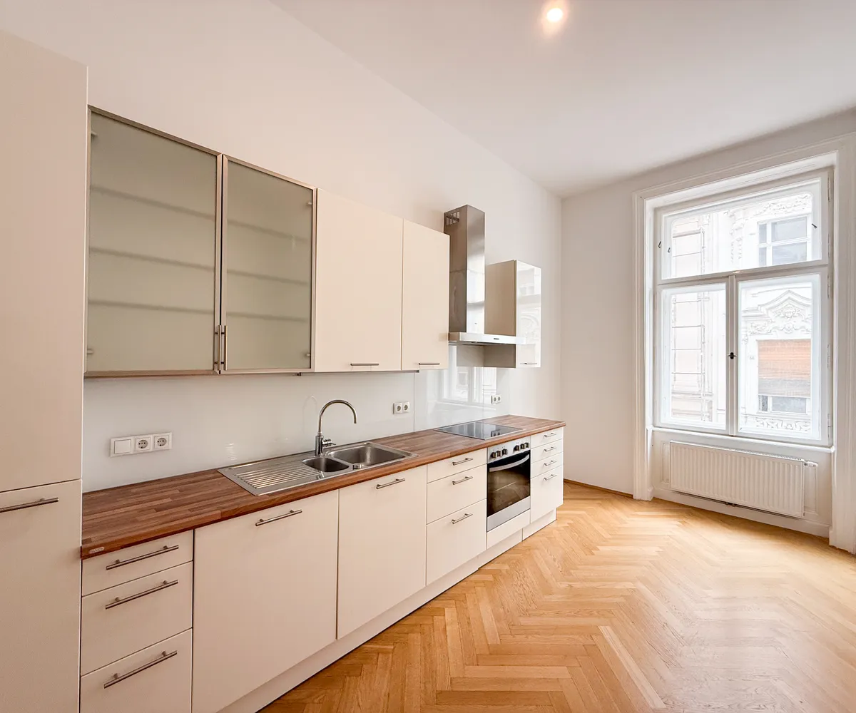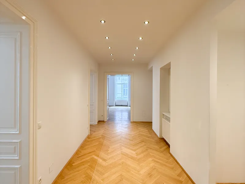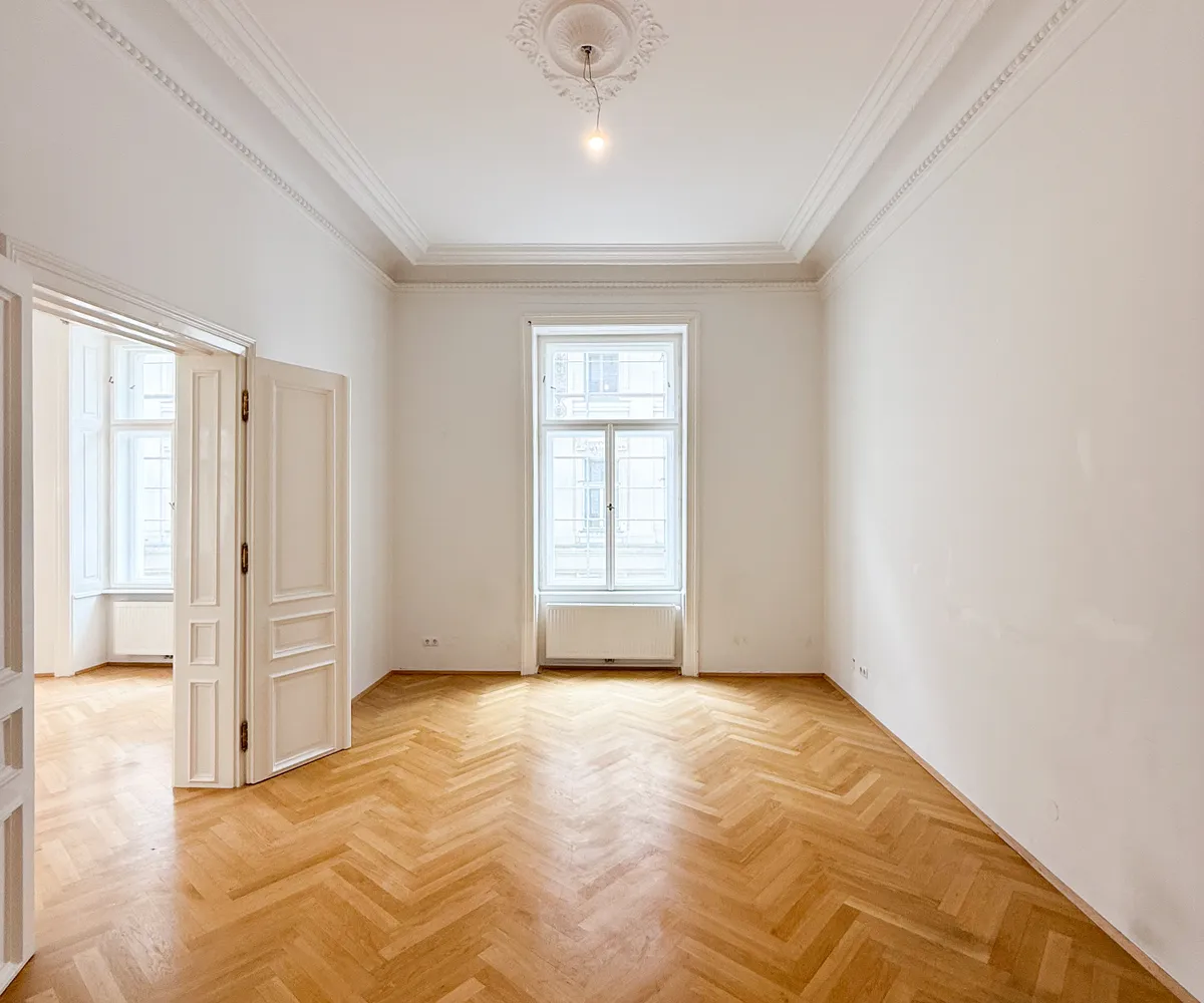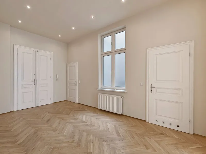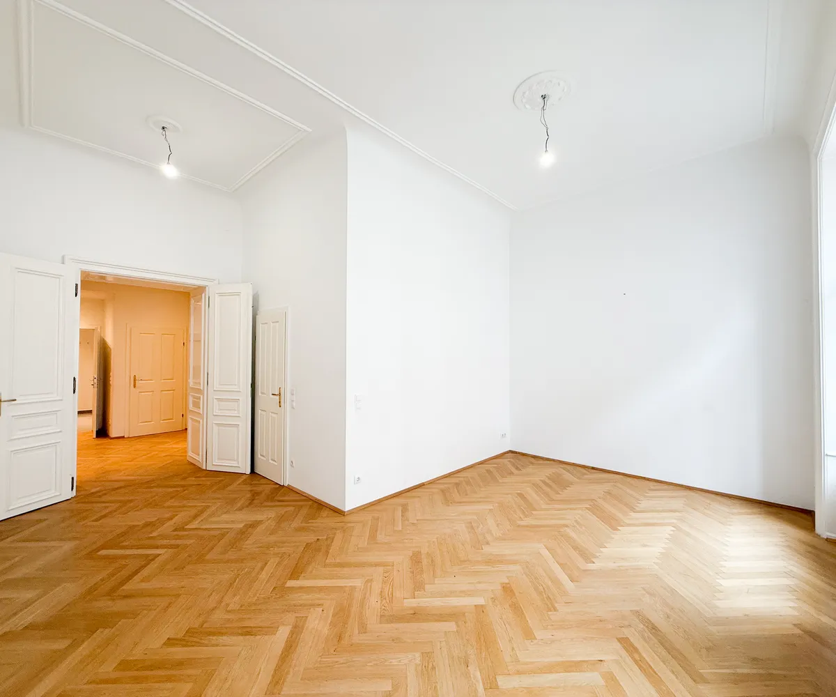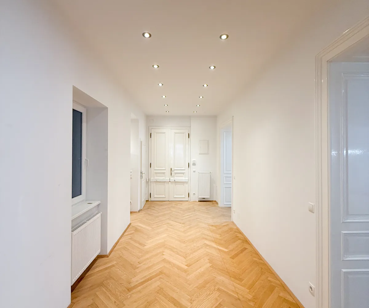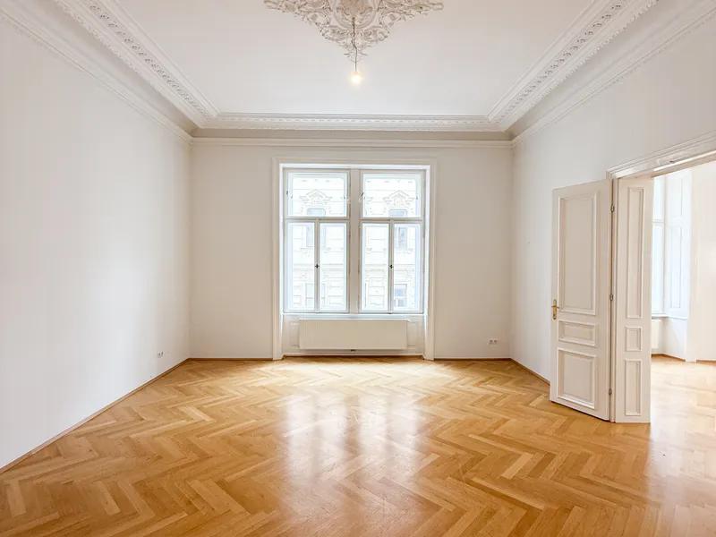 Diese großzügige Altbauwohnung mit rund 160 m² Wohnfläche vereint historischen Wiener Charme mit modernem Komfort. Gelegen in einem repräsentativen Gründerzeithaus im 4. Bezirk, besticht sie durch ihre hohen Räume, elegante Stuckdecken, klassische Flügeltüren und wunderschöne Fischgrätparkettböden.