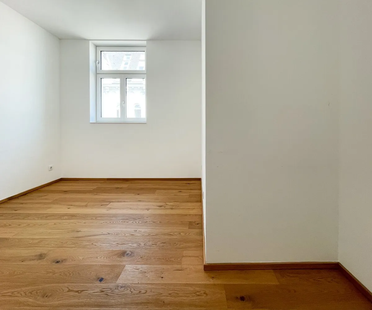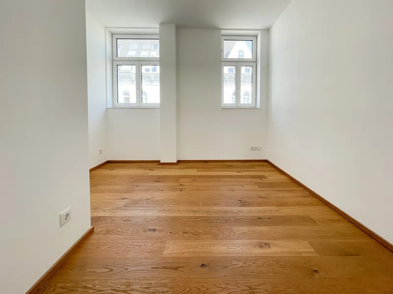 Besonderes Augenmerk wurde auch auf die Erhaltung und Aufwertung klassischer Altbauelemente in den Wohnungen gelegt. Die hohen Räume und der Fischgrätparkett schaffen eine Atmosphäre zeitloser Eleganz.
