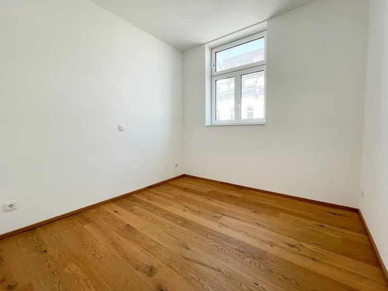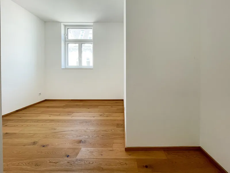 Besonderes Augenmerk wurde auch auf die Erhaltung und Aufwertung klassischer Altbauelemente in den Wohnungen gelegt. Die hohen Räume und der Fischgrätparkett schaffen eine Atmosphäre zeitloser Eleganz.