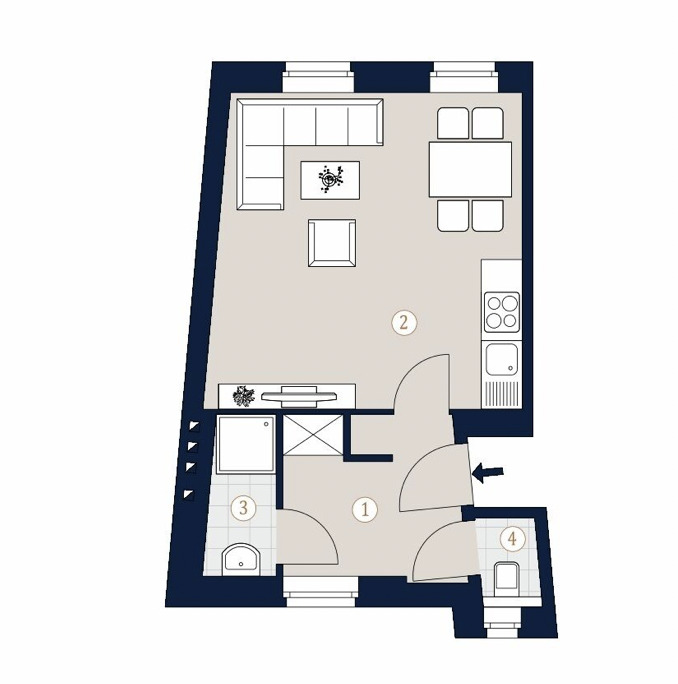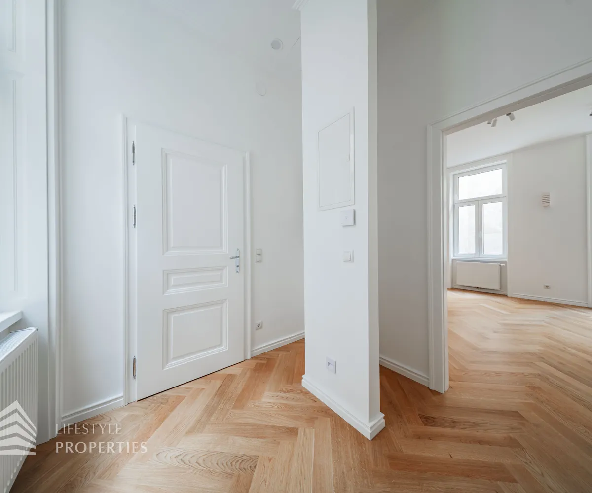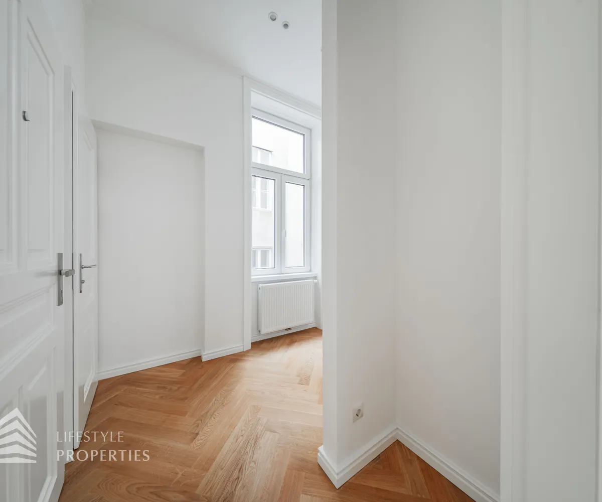 Die Wohnung ist ein Erstbezug und befindet sich im 2. Liftstock eines im Jahre 1900 errichteten Altbauhauses. Sie verfügt über eine Wohnfläche von ca. 30 m² und teilt sich in einen Vorraum, einen Wohn- Schlafraum, zwei Zimmer, ein Bad mit Dusche und Handtuchtrockner und ein separates WC mit Handwaschbecken auf.