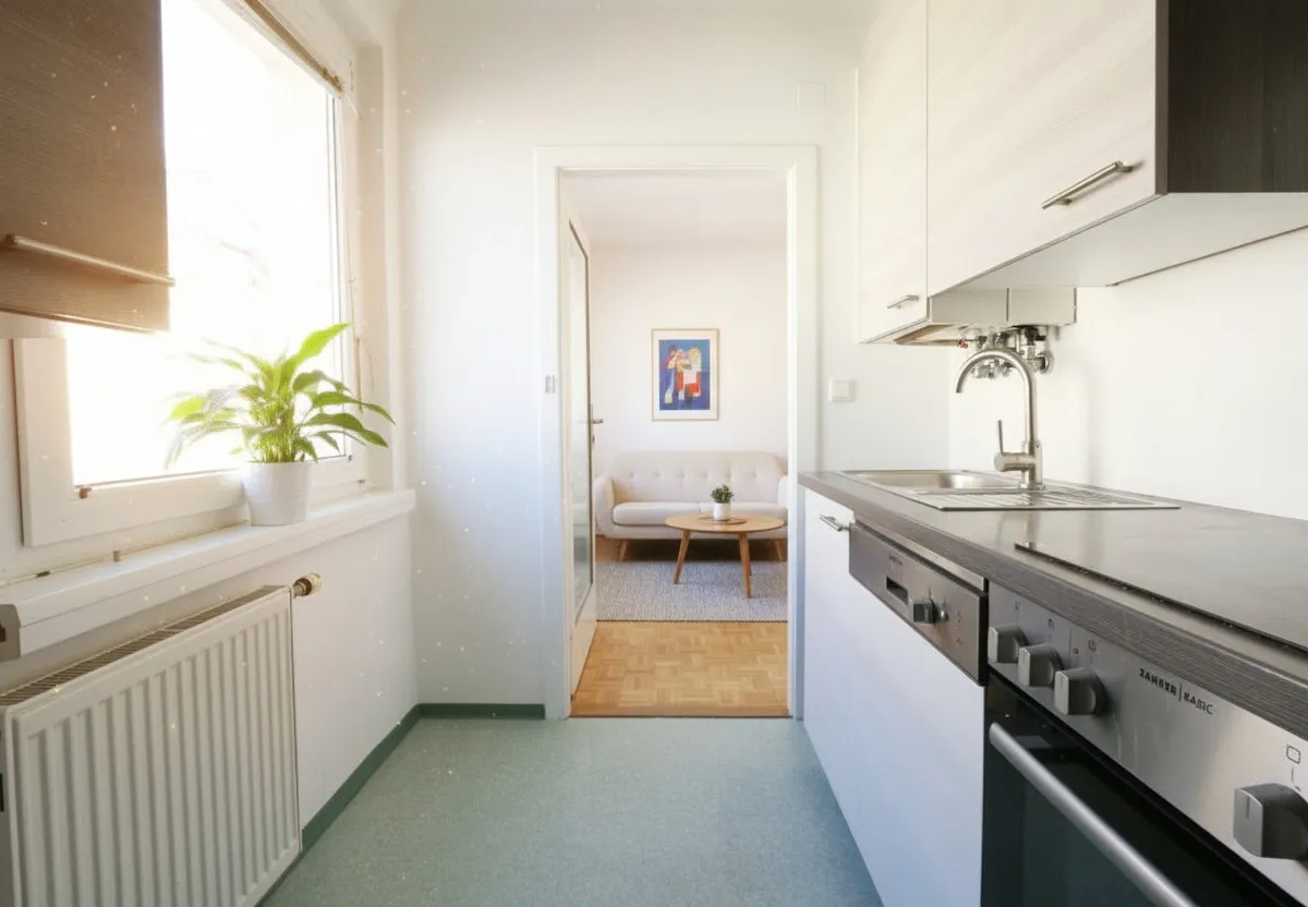 Beim Betreten der Wohnung empfängt Sie ein einladendes Vorzimmer, von dem aus alle Räume bequem erreichbar sind. Das Wohnzimmer strahlt Helligkeit und Geborgenheit aus und bietet ausreichend Platz für gemütliche Abende. Direkt angrenzend befindet sich die separate, voll ausgestattete Küche – perfekt, um kulinarische Ideen in die Tat umzusetzen.