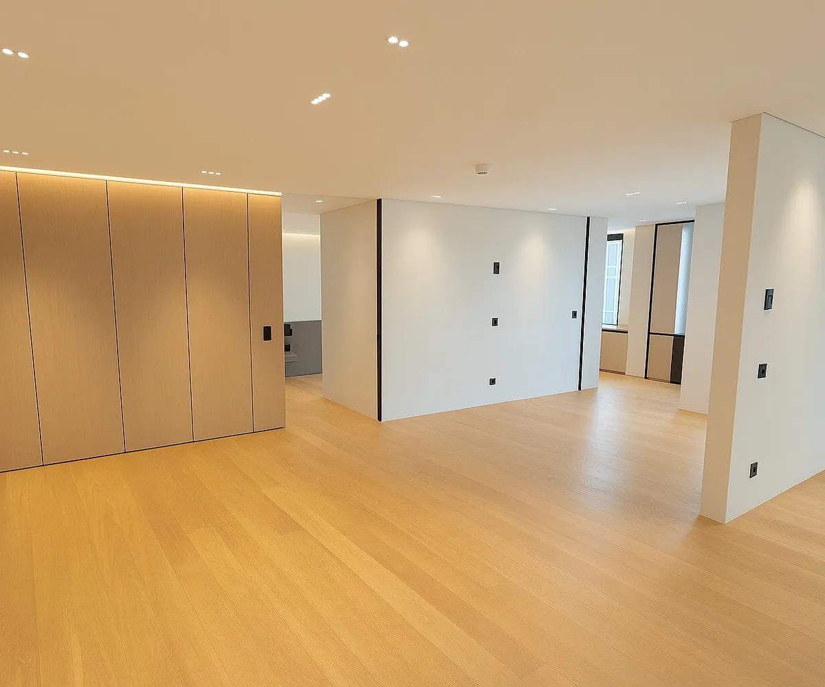 Edle Materialien wie Parkettböden und großformatiges Feinsteinzeug