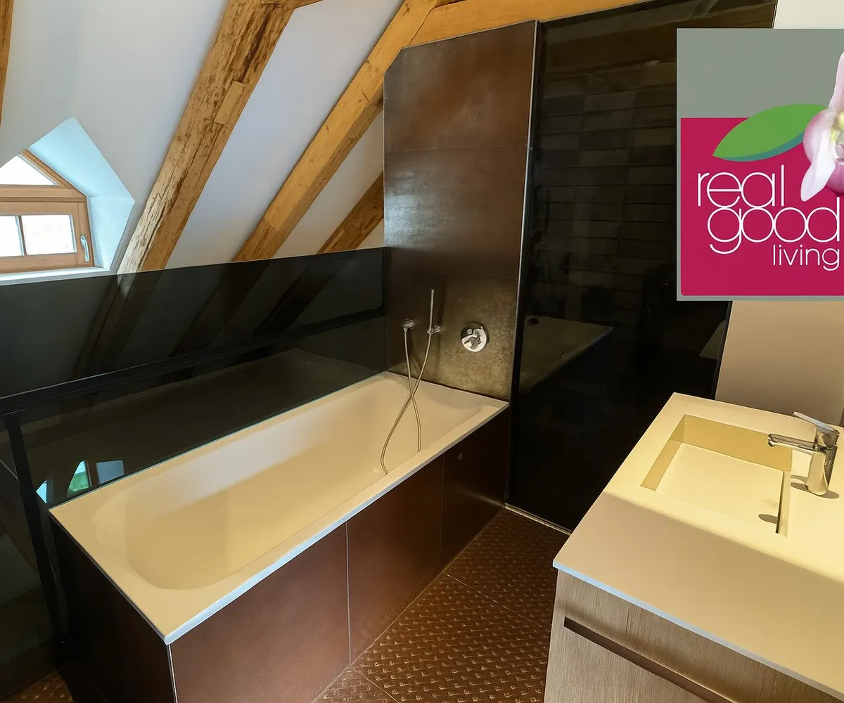 Bad mit Badewanne, separater Dusche & WC im oberen Geschoss