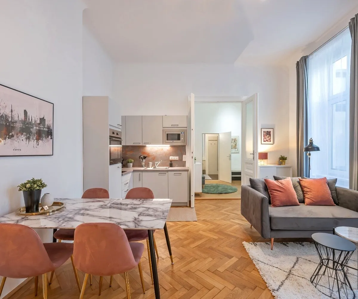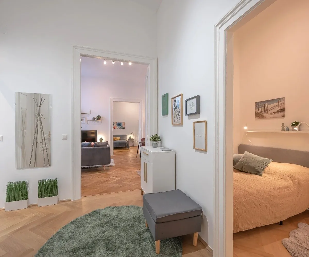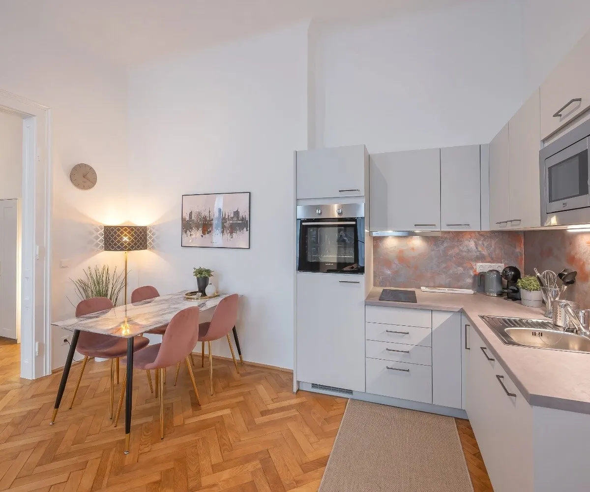 Alle Stationen befinden sich in fußläufiger Entfernung, ebenso wie zahlreiche Einkaufsmöglichkeiten, Restaurants und Kulturangebote der Wiener Innenstadt.