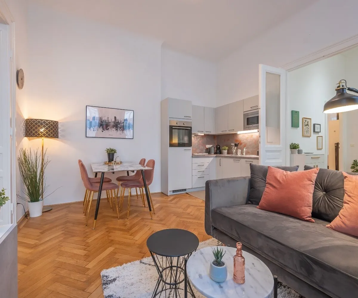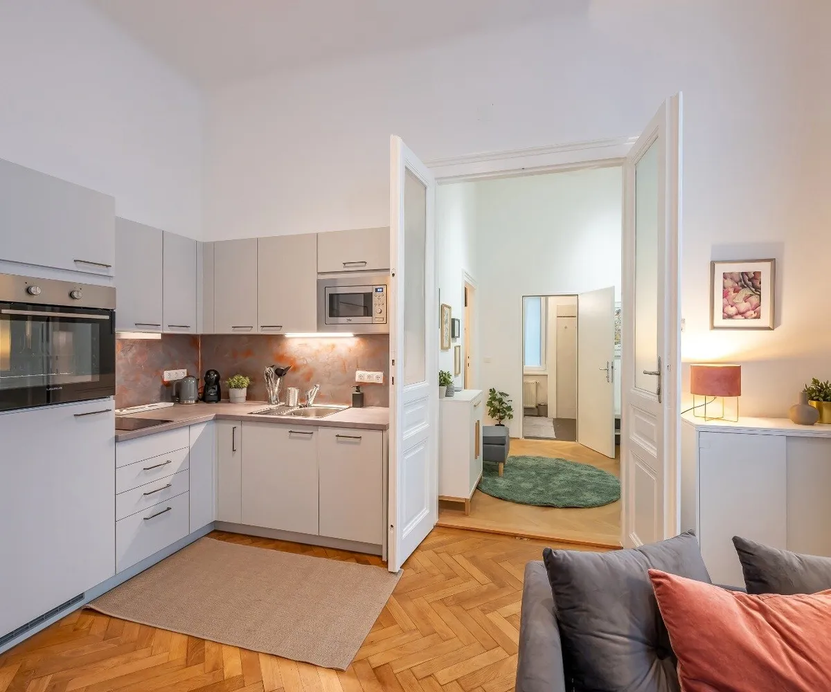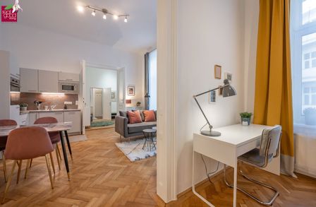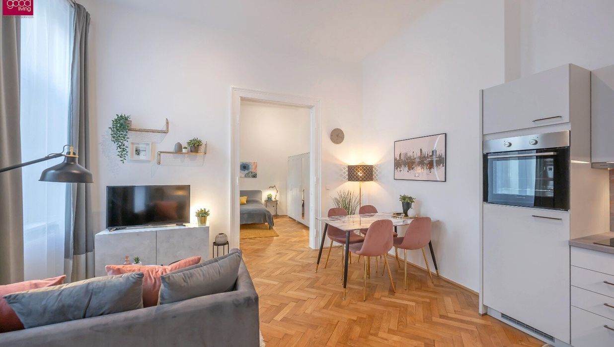 Zum Verkauf steht diese charmante, hofseitig gelegene Altbauwohnung in einem prachtvollen, gepflegten Gebäude im Herzen der Wiener Innenstadt. Die südseitig ausgerichtete Wohnung bietet auf ca. 64,4 m² Wohnfläche: