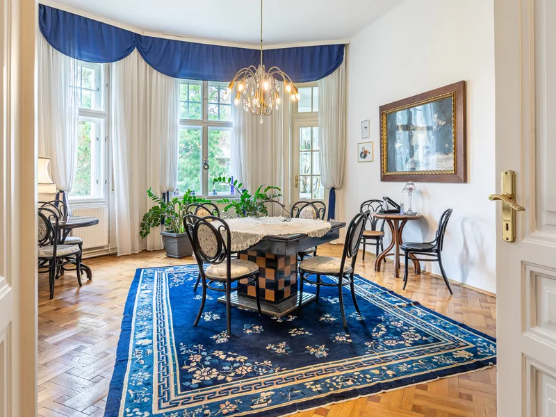 Die hohe Decke und die großen Fenster schaffen eine helle und einladende Atmosphäre.Ein Weinkeller ist ebenfalls vorhanden, sodass die Bewohner erlesene Weine genießen können. Eine Tiefgarage bietet die Möglichkeit, das Auto sicher und bequem unterzubringen.