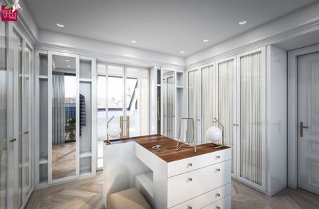 Bereits beim Betreten empfängt Sie ein elegantes Vorzimmer mit Gäste-WC. Das weitläufige Wohnzimmer mit hohen Decken und großen Fenstern schafft eine lichtdurchflutete, einladende Atmosphäre – perfekt für stilvolle Empfänge oder gemütliche Abende.