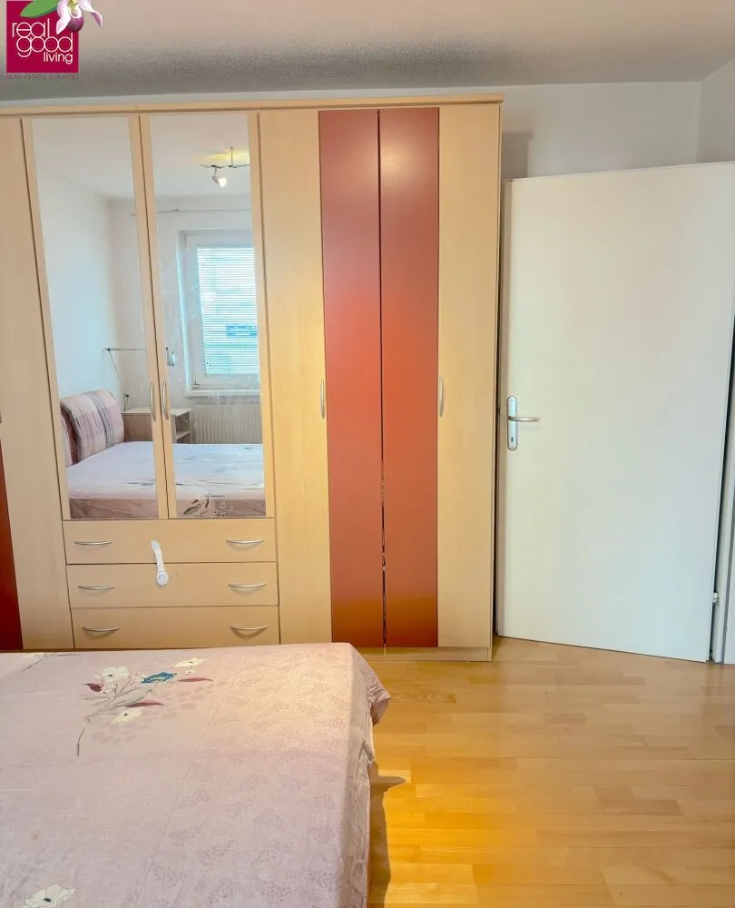 Diese attraktive 2‑Zimmer‑Wohnung im 1. Obergeschoss mit Lift bietet auf rund 61,26 m² eine großzügige Wohnküche (ca. 36 m²) , ein Schlafzimmer (ca. 14,96 m²) sowie eine sonnige Loggia .