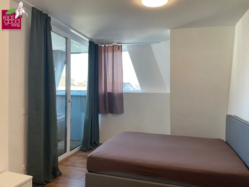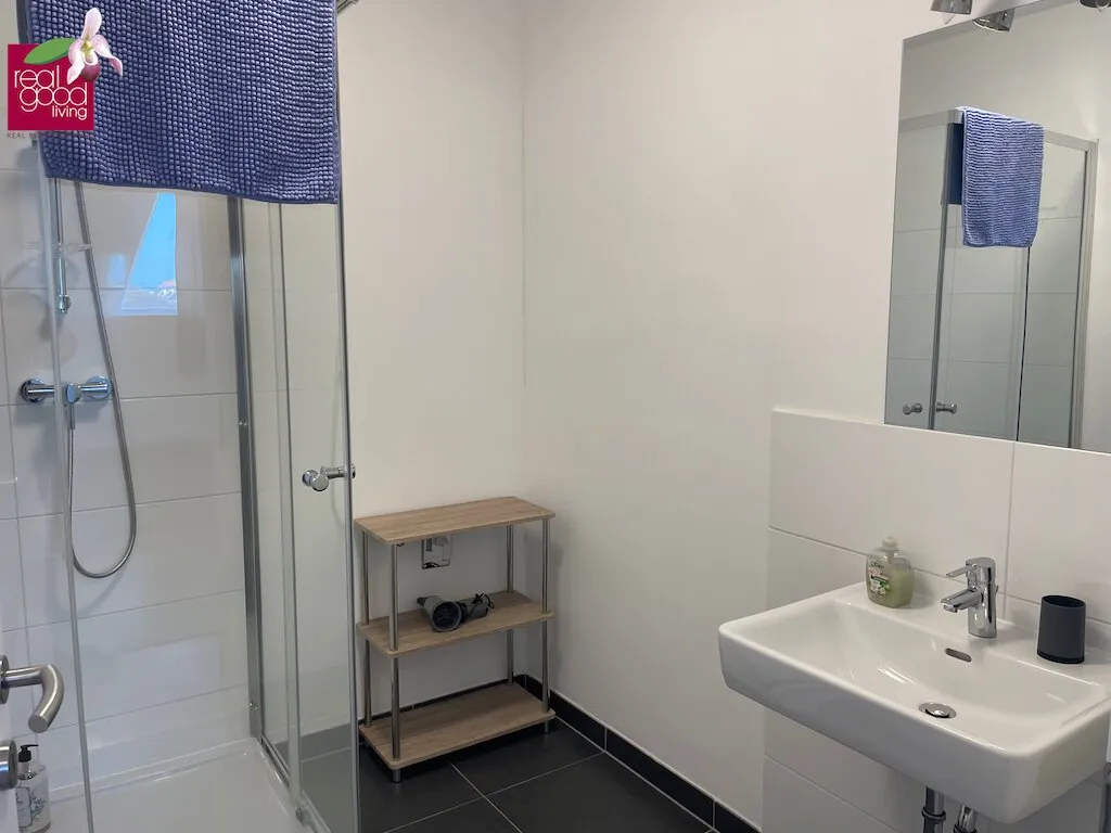 Von hier gelangt man zum Schlafzimmer, separten WC, und dem Badezimmer mit Dusche. Auch dieses Apartment ist mit einer feinen Loggia in der Größe von ca 8,13 m² versehen, die vom Schlafzimmer und dem Wohnzimmer erreichbar ist.
