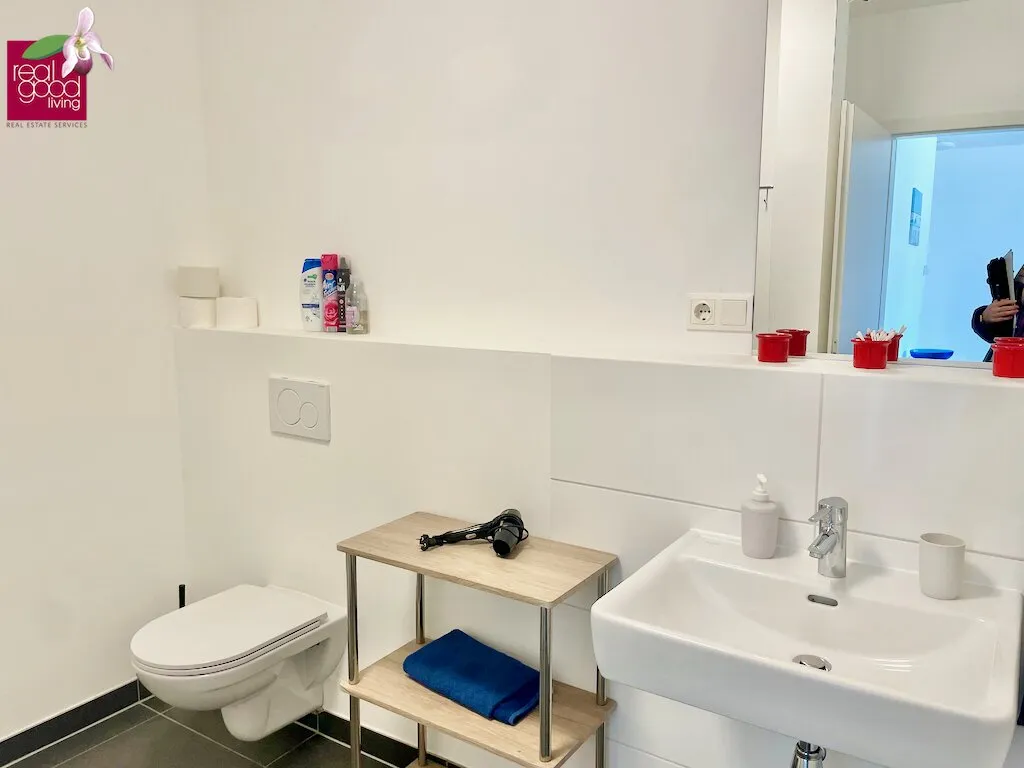 Die hochwertigen Materialien, darunter stilvolle Fliesen und edles Parkett, schaffen eine warme und einladende Atmosphäre. Die großen Fenster sorgen nicht nur für eine hervorragende Belüftung, sondern auch für viel Tageslicht, das die Räume erhellt und eine angenehme Wohnatmosphäre schafft.