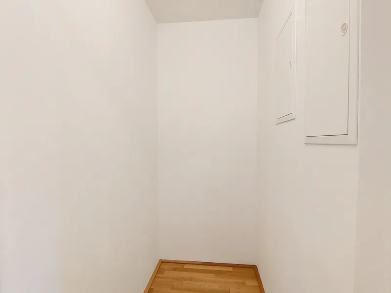 Die Wohnung selbst befindet sich im 6. Obergeschoss und verfügt über eine kompakte Wohnküche mit zwei abtrennbaren Schlafzimmern, ein Badezimmer mit Dusche, eine separate Toilette, einen Abstellraum sowie einen Vorraum. Der Balkon rundet das Angebot ideal ab.