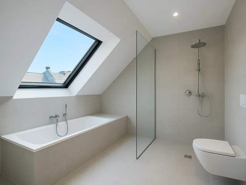 Drei stilvolle Badezimmer mit Tageslicht