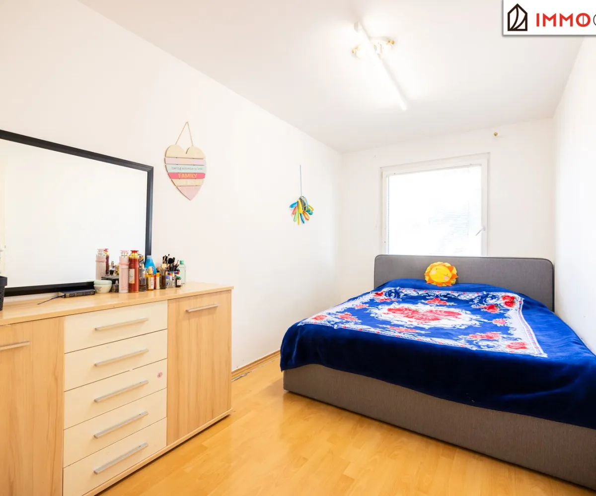 Das Schlafzimmer (ca. 17 m²) und das etwas kleinere Zimmer mit ca. 10 m² sind vielseitig nutzbar – als Kinder-, Gäste- oder Arbeitszimmer. Alle Räume profitieren von natürlichem Licht durch mehrfachverglaste Kunststofffenster.