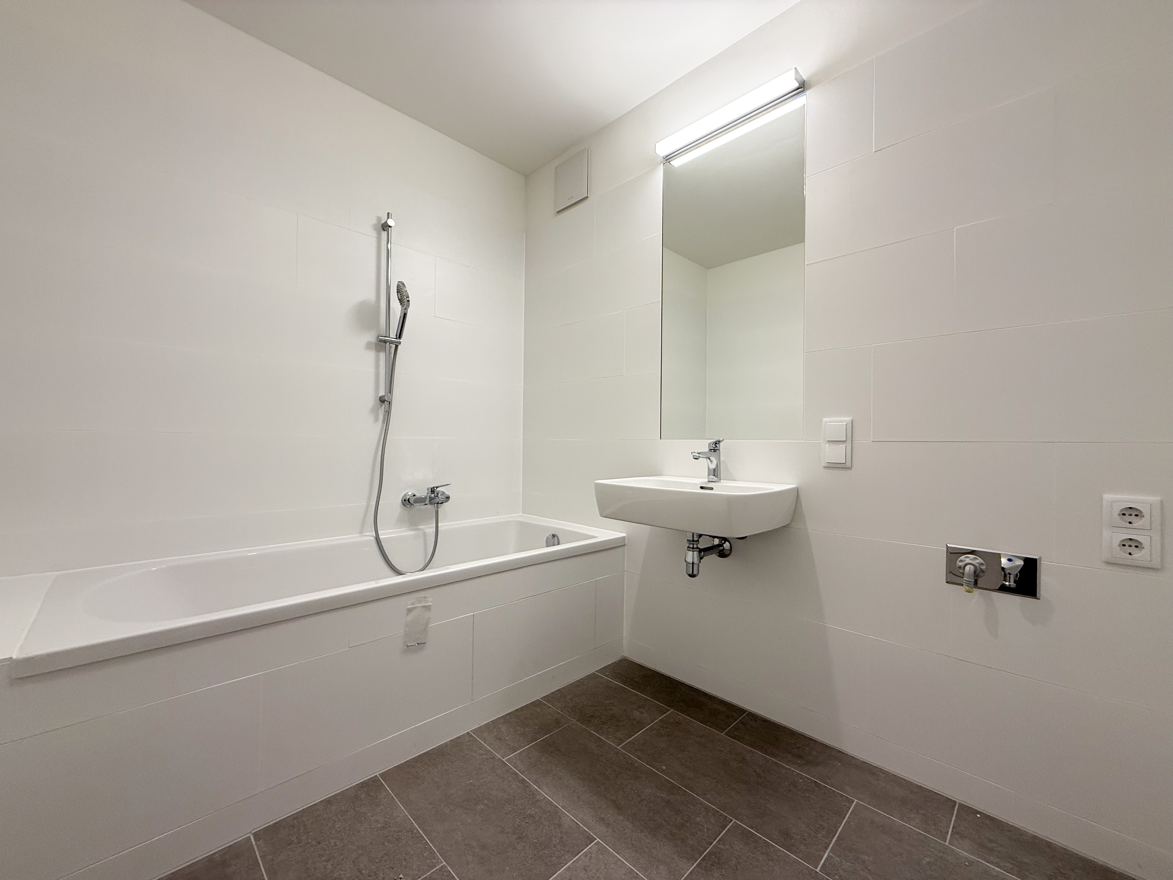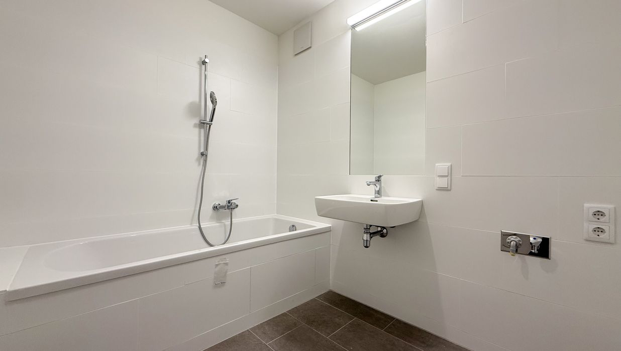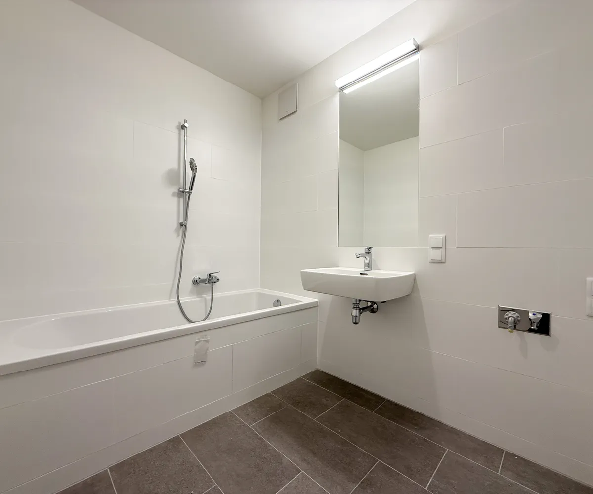 Badezimmer mit Badewanne, Waschbecken und Waschmaschinenanschluss (ca. 5,07 m²)