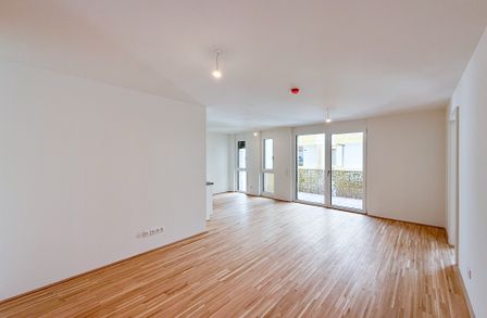 Die Wohnung verfügt über Parkett in den Wohnräumen, moderne Fliesen in den Nassbereichen, großflächige Fensterflächen und eine zeitgemäße Haustechnik. Das Gebäude bietet zusätzlich Fahrradabstellplätze, Kinderwagenräume sowie ein begrüntes Flachdach.