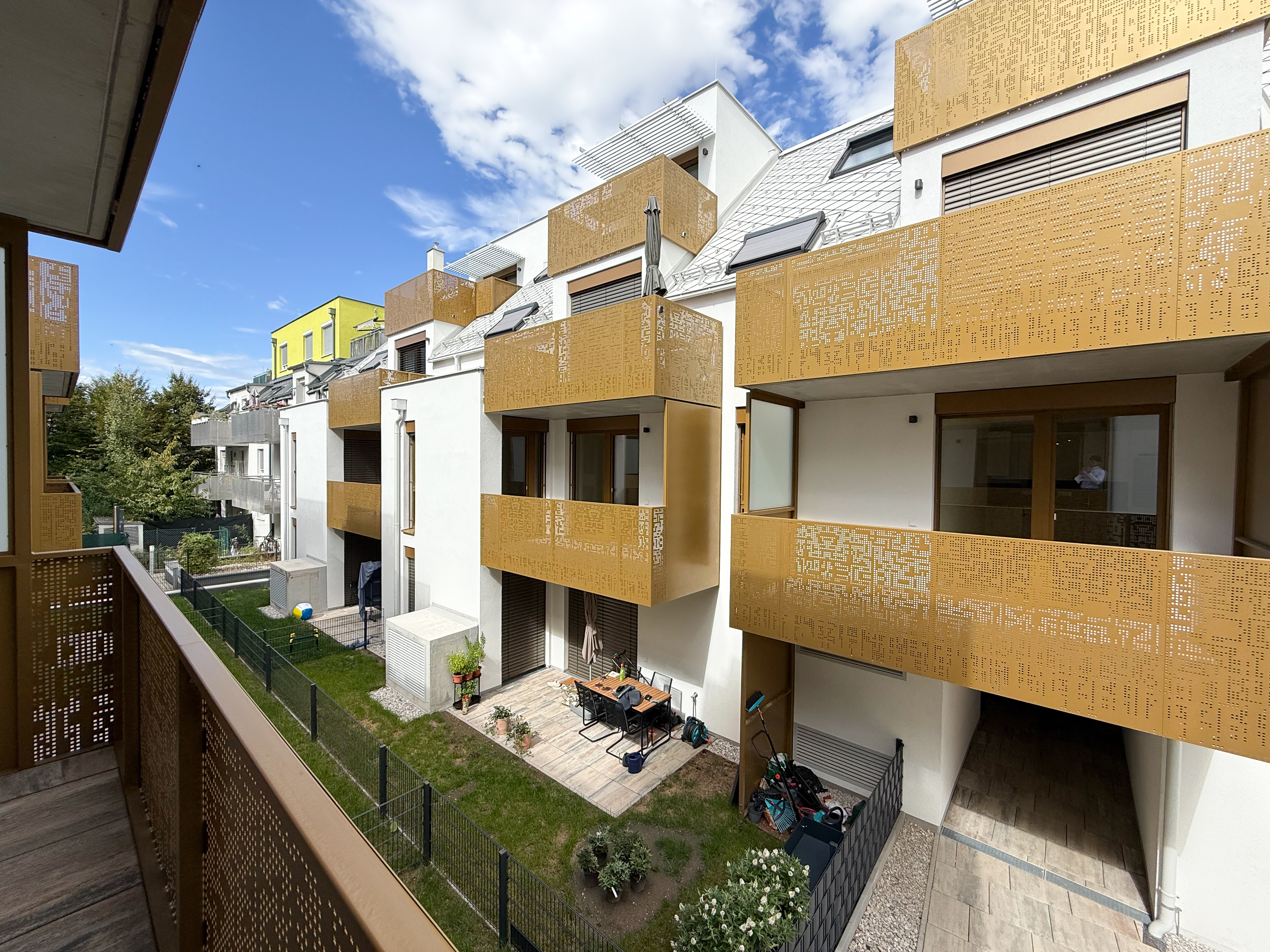 Die Wohnungen wurden im Jahr 2023 fertiggestellt und sind ab sofort bezugsfertig. Im Vordergrund steht ein durchdachtes Konzept, das kompakte 2-Zimmer-Wohnungen – ideal für Anleger:innen – mit großzügigeren Familienwohnungen kombiniert. Jede Einheit verfügt über eine private Freifläche wie Balkon, Terrasse, Loggia oder Eigengarten.