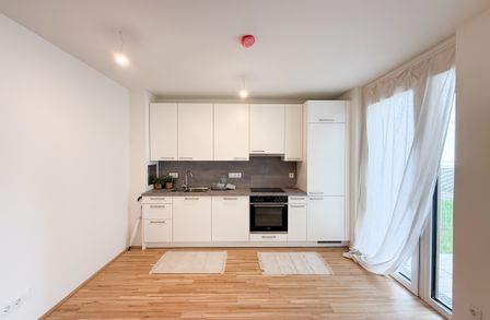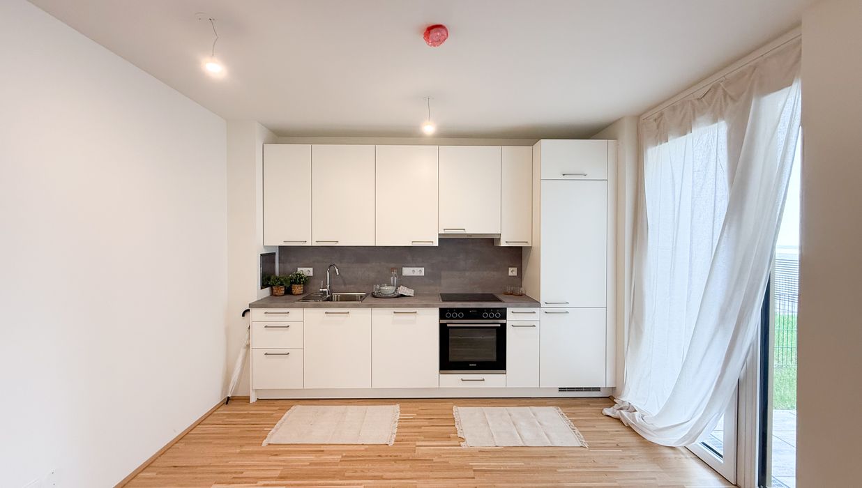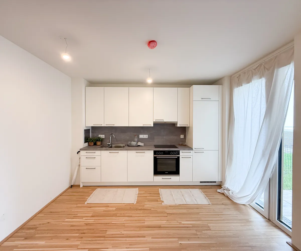 Zum Verkauf gelangt eine kompakte, aber sehr gut geschnittene 1-Zimmer-Neubauwohnung im Erdgeschoss eines modernen Wohnprojekts in Kagran. Die Einheit überzeugt mit effizienter Raumaufteilung, einer großzügigen Freifläche und hochwertiger Ausstattung – ideal als Vorsorgewohnung oder für Eigennutzer mit Anspruch auf urbanes Wohnen im Grünen.