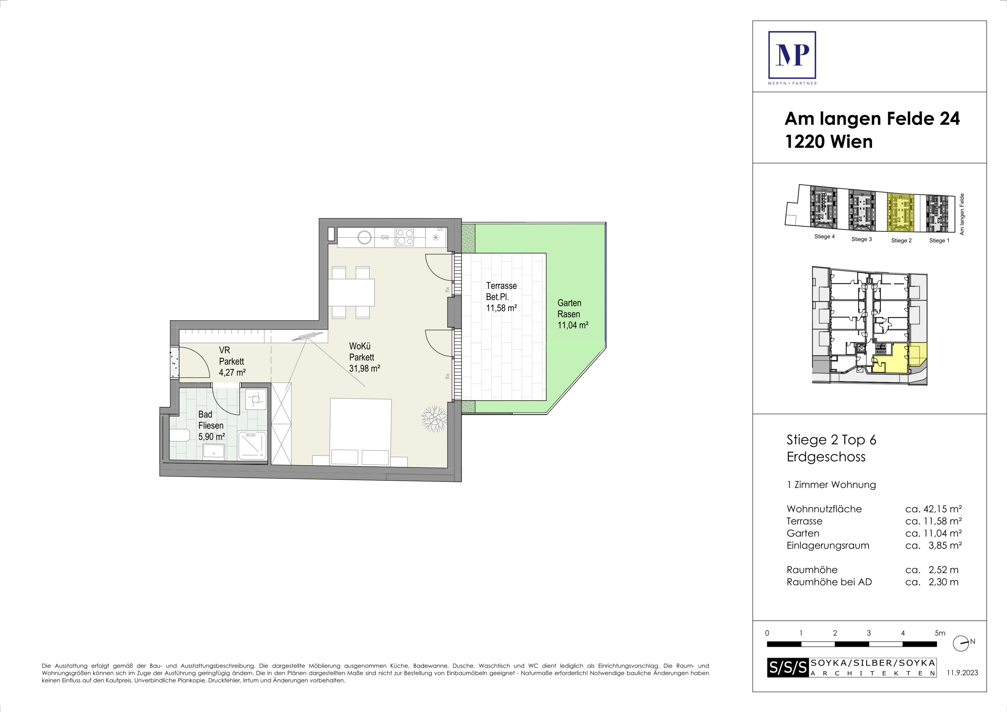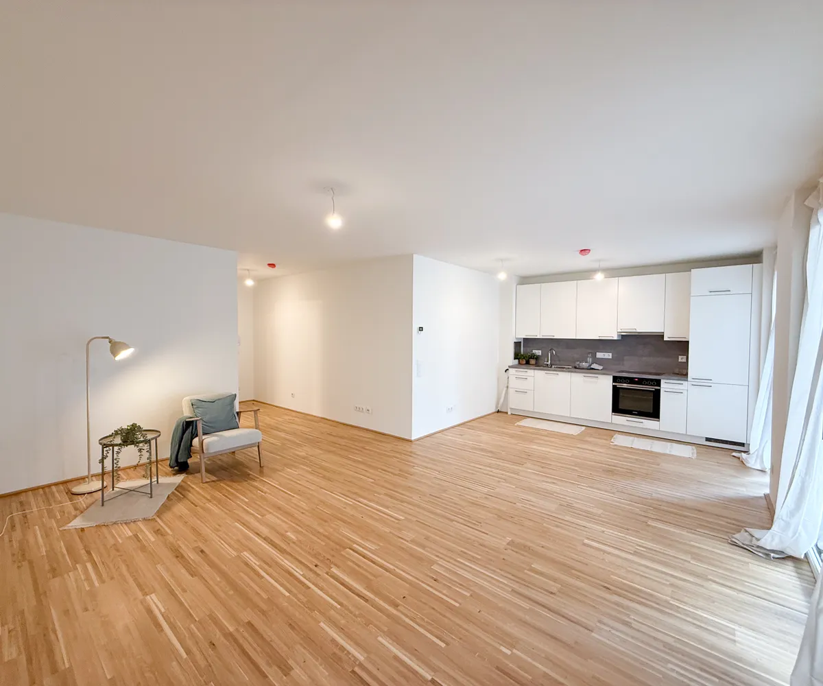 Die Wohnungen wurden im Jahr 2023 fertiggestellt und sind ab sofort bezugsfertig. Im Vordergrund steht ein durchdachtes Konzept, das kompakte 2-Zimmer-Wohnungen – ideal für Anleger:innen – mit großzügigeren Familienwohnungen kombiniert. Jede Einheit verfügt über eine private Freifläche wie Balkon, Terrasse, Loggia oder Eigengarten.