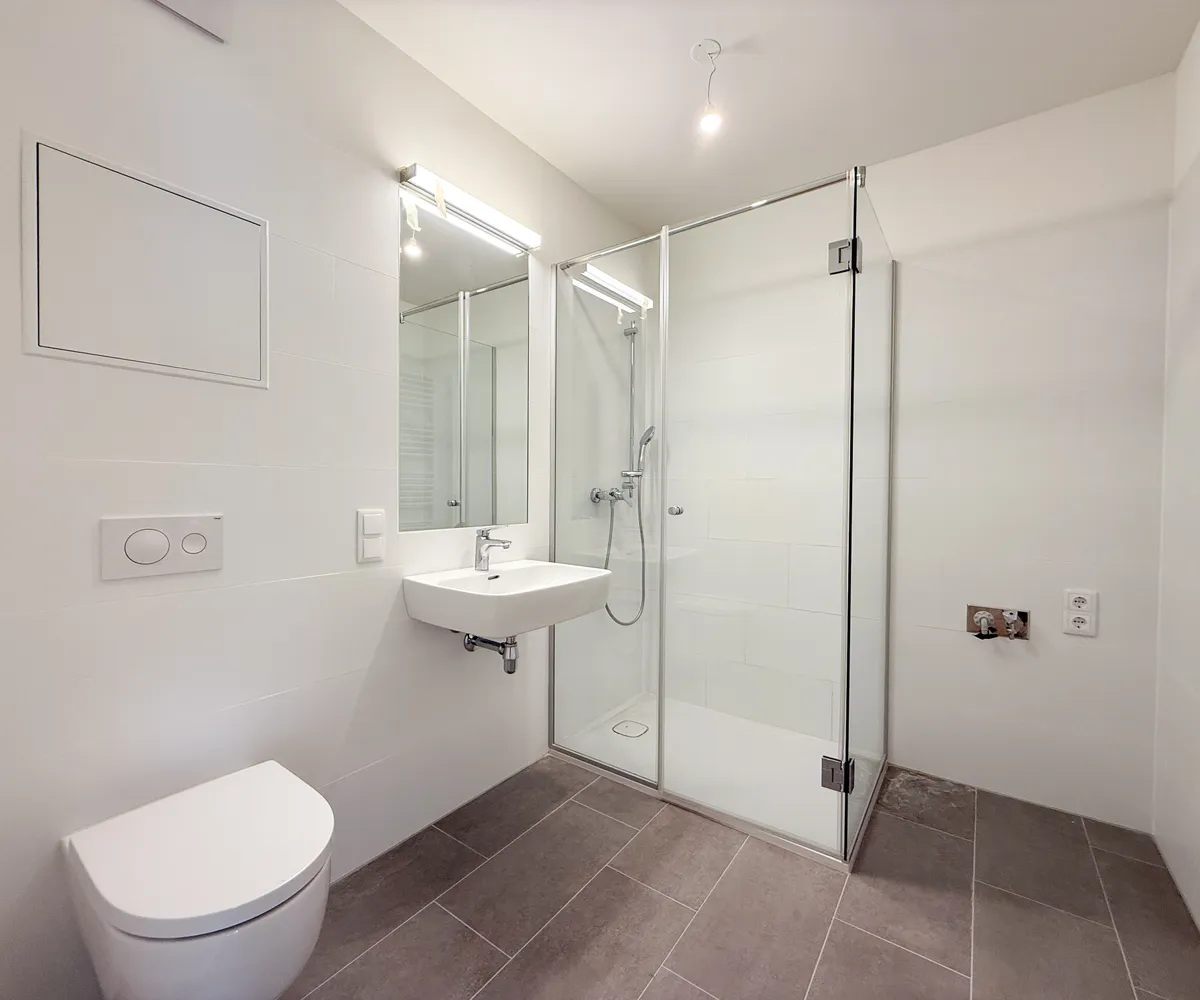 Die Wohnung ist mit Parkettböden in den Wohnräumen, modernen Fliesen in den Nassbereichen sowie zeitgemäßer Haustechnik ausgestattet. Großflächige Fensterflächen sorgen für viel Licht, während das Gebäude durch Extras wie Fahrradabstellplätze, Kinderwagenräume und ein begrüntes Flachdach ergänzt wird.
