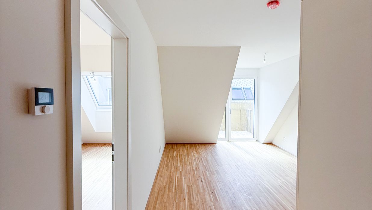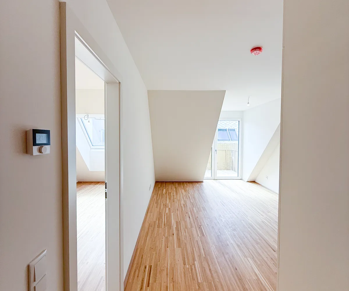 Diese charmante 2-Zimmer-Dachgeschosswohnung befindet sich im 1. Dachgeschoss des fertiggestellten Projekts Am Langen Felde 24 in Kagran und überzeugt durch eine kluge Raumaufteilung, helle Wohnbereiche und eine attraktive Freifläche.