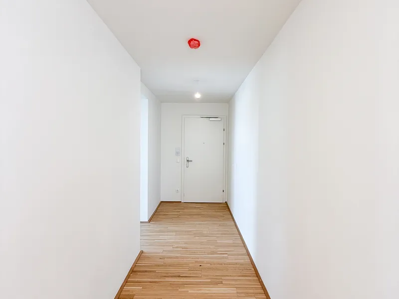 Die Wohnung ist mit hochwertigen Parkettböden in den Wohnräumen, modernen Fliesen in den Nassbereichen sowie zeitgemäßer Haustechnik ausgestattet. Großflächige Fensterflächen mit Sonnenschutz sorgen für lichtdurchflutete Räume. Das Gebäude bietet zudem Extras wie Fahrradabstellplätze , Kinderwagenräume und ein begrüntes Flachdach .