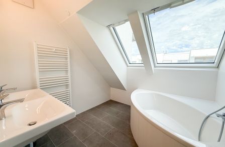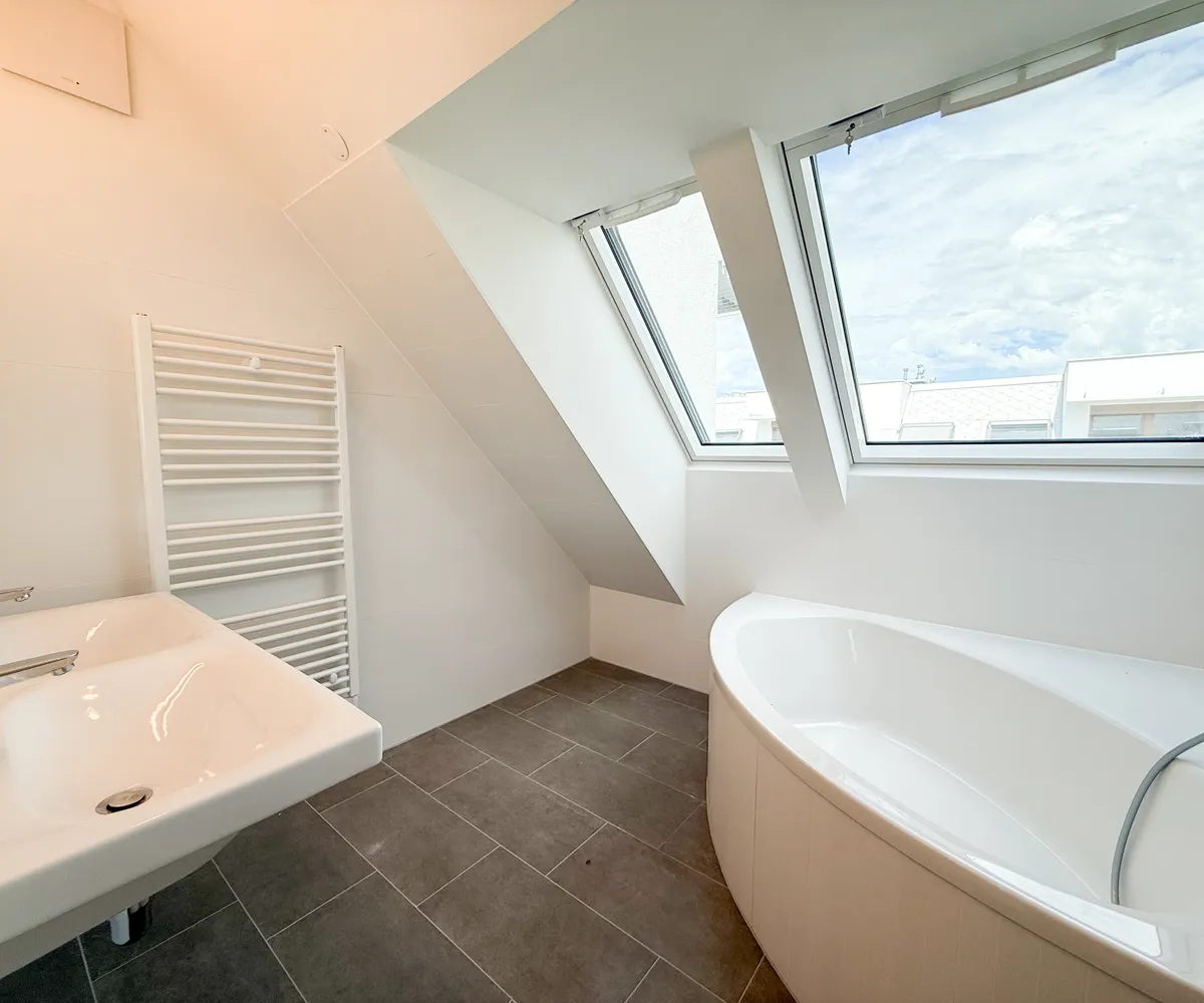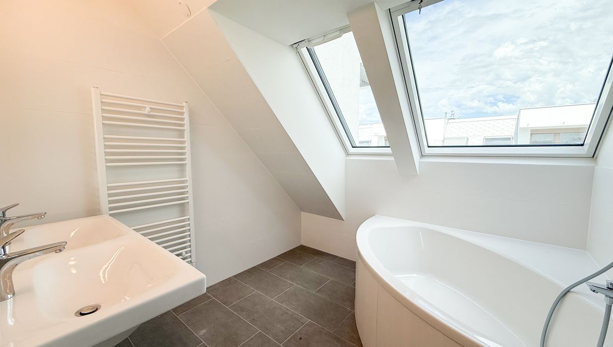 Badezimmer (ca. 6,14 m²) – modern mit Badewanne und Waschbecken