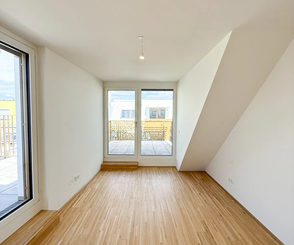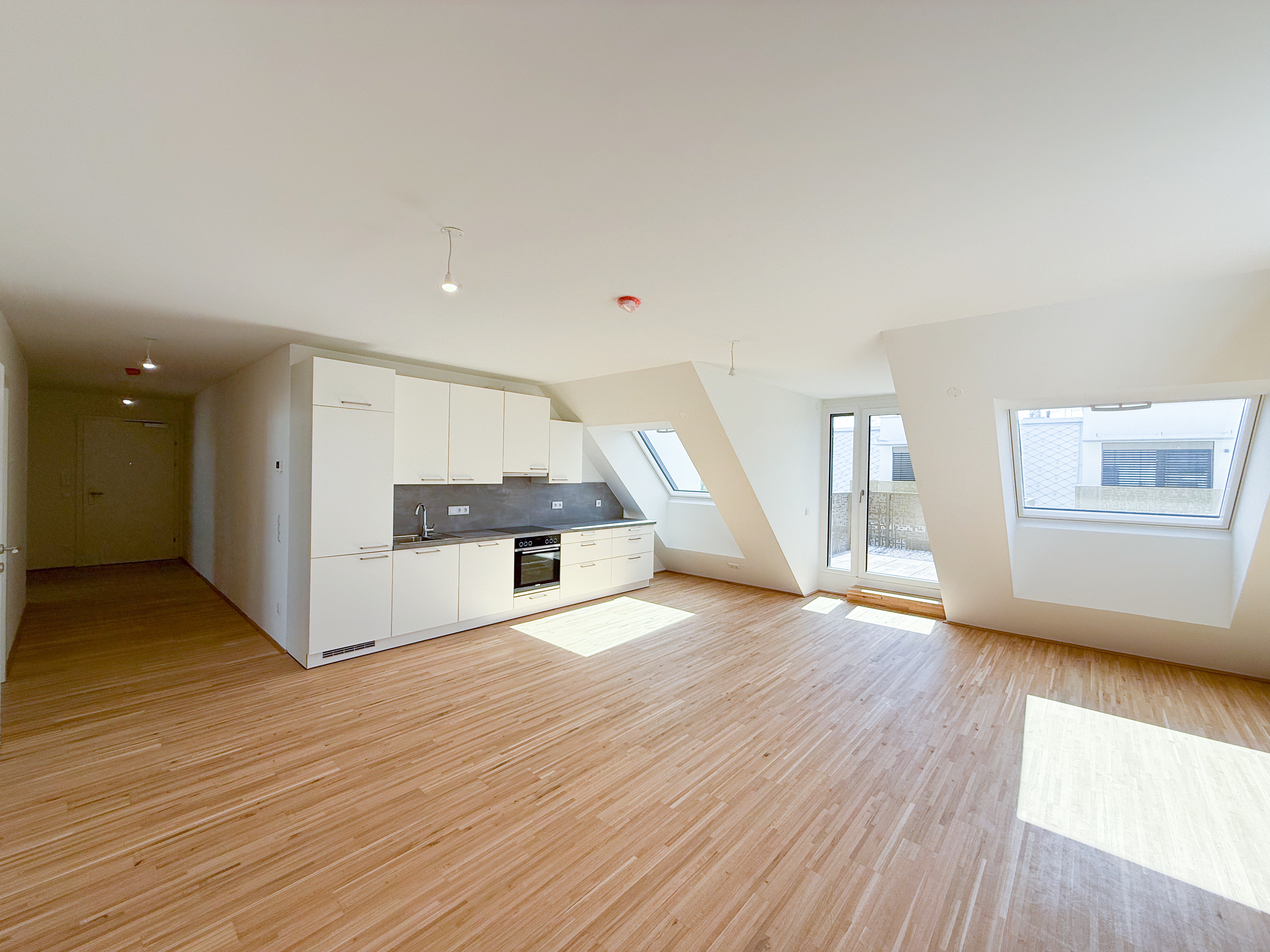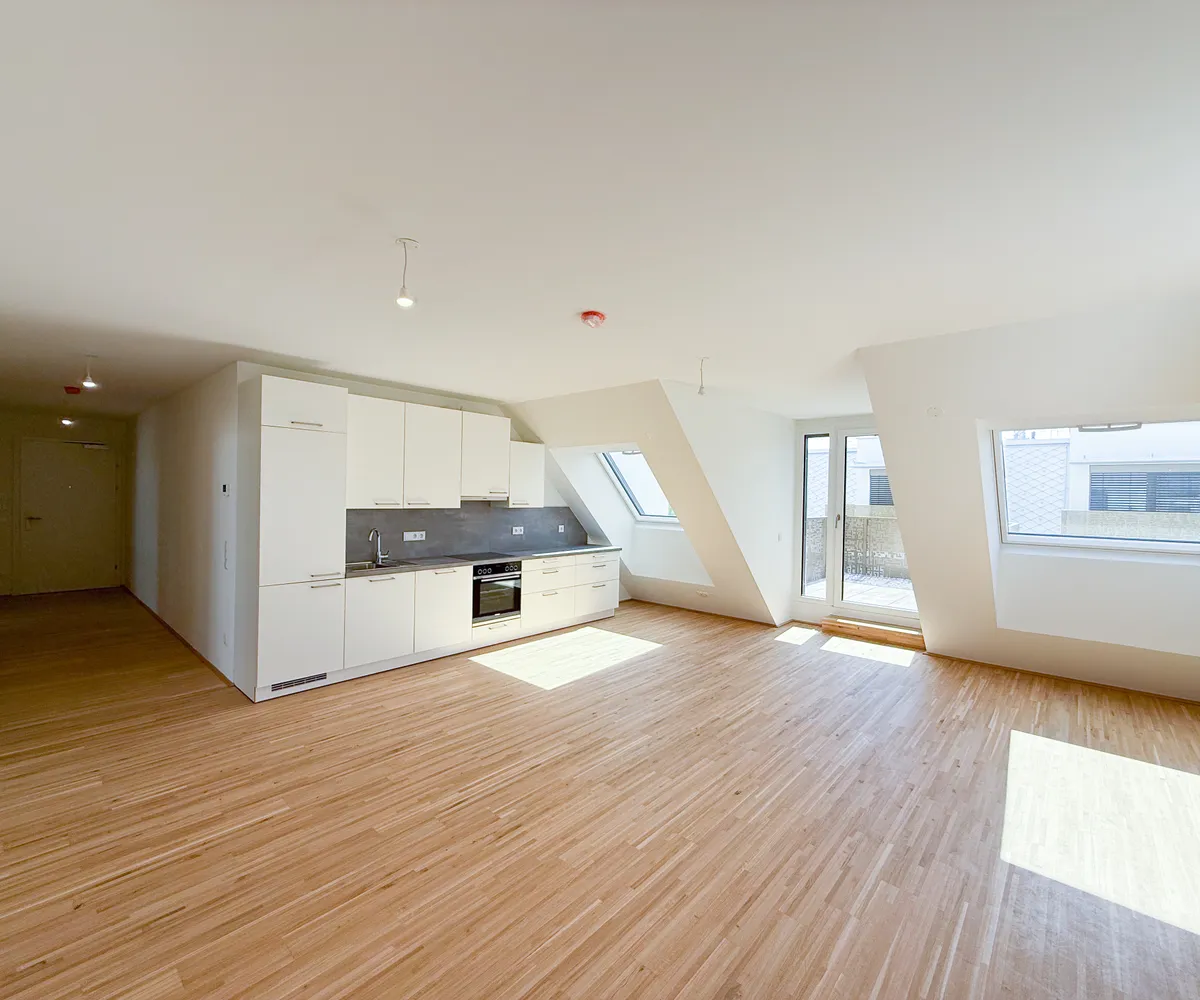 Diese exklusive 4-Zimmer-Dachgeschosswohnung befindet sich im 2. Dachgeschoss des Projekts Am Langen Felde 24 in Kagran und überzeugt durch ihre großzügige Wohnfläche, eine durchdachte Raumaufteilung sowie eine weitläufige Terrasse mit mehreren Ausgängen ins Freie.