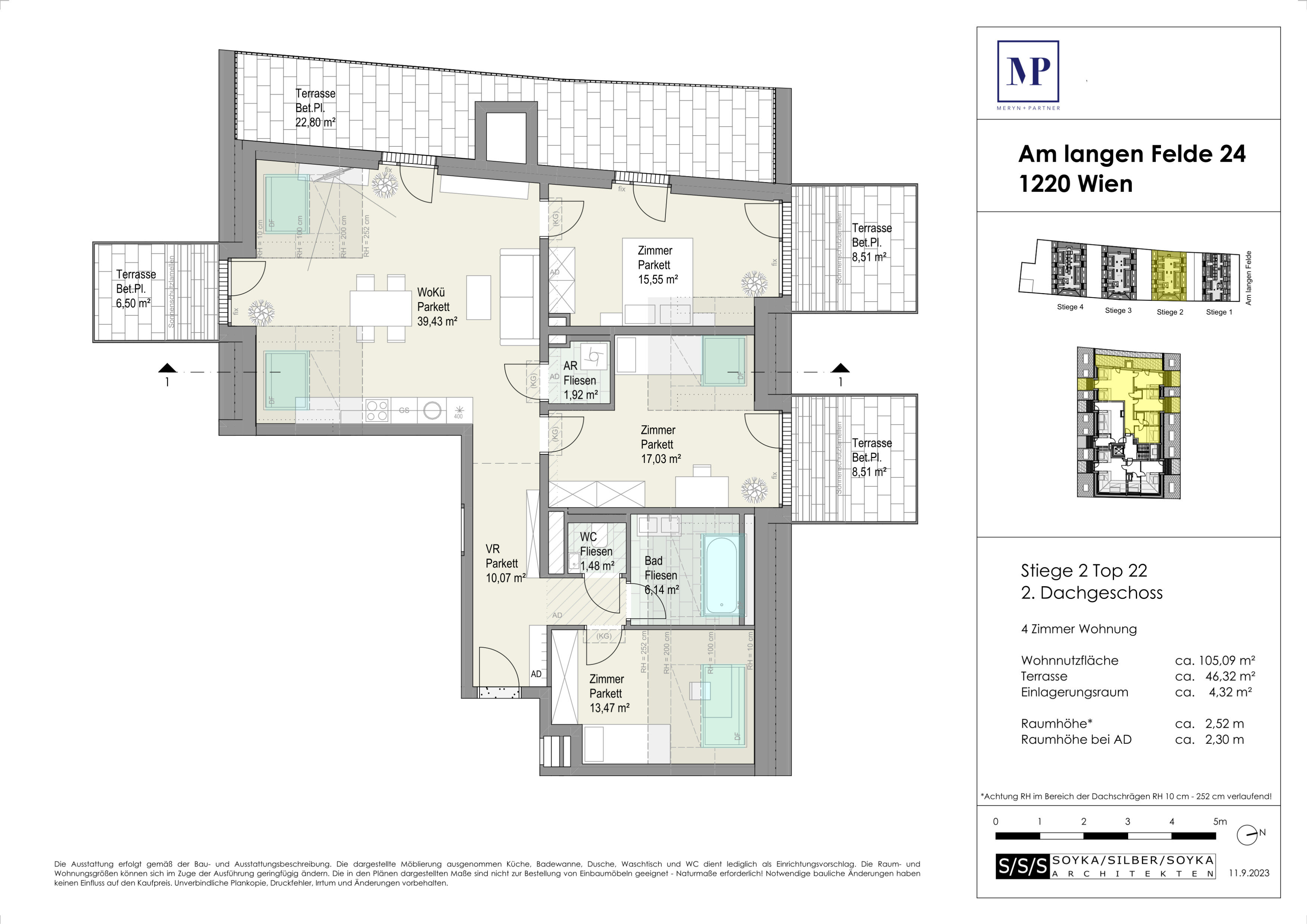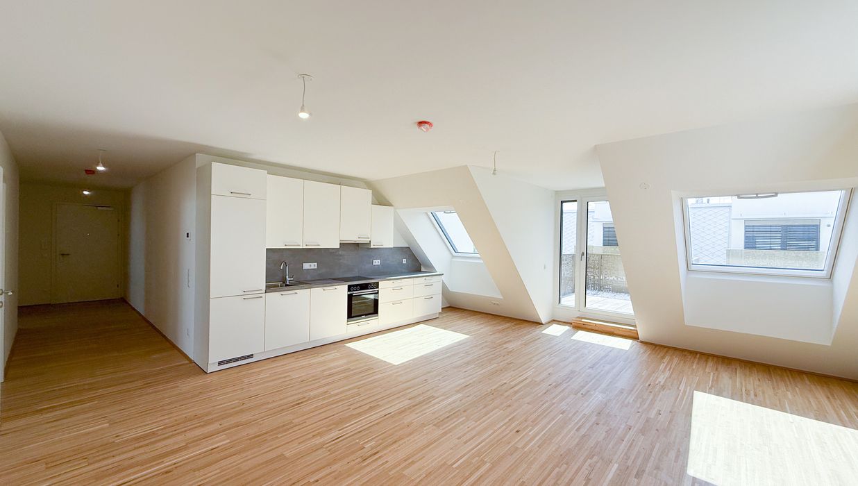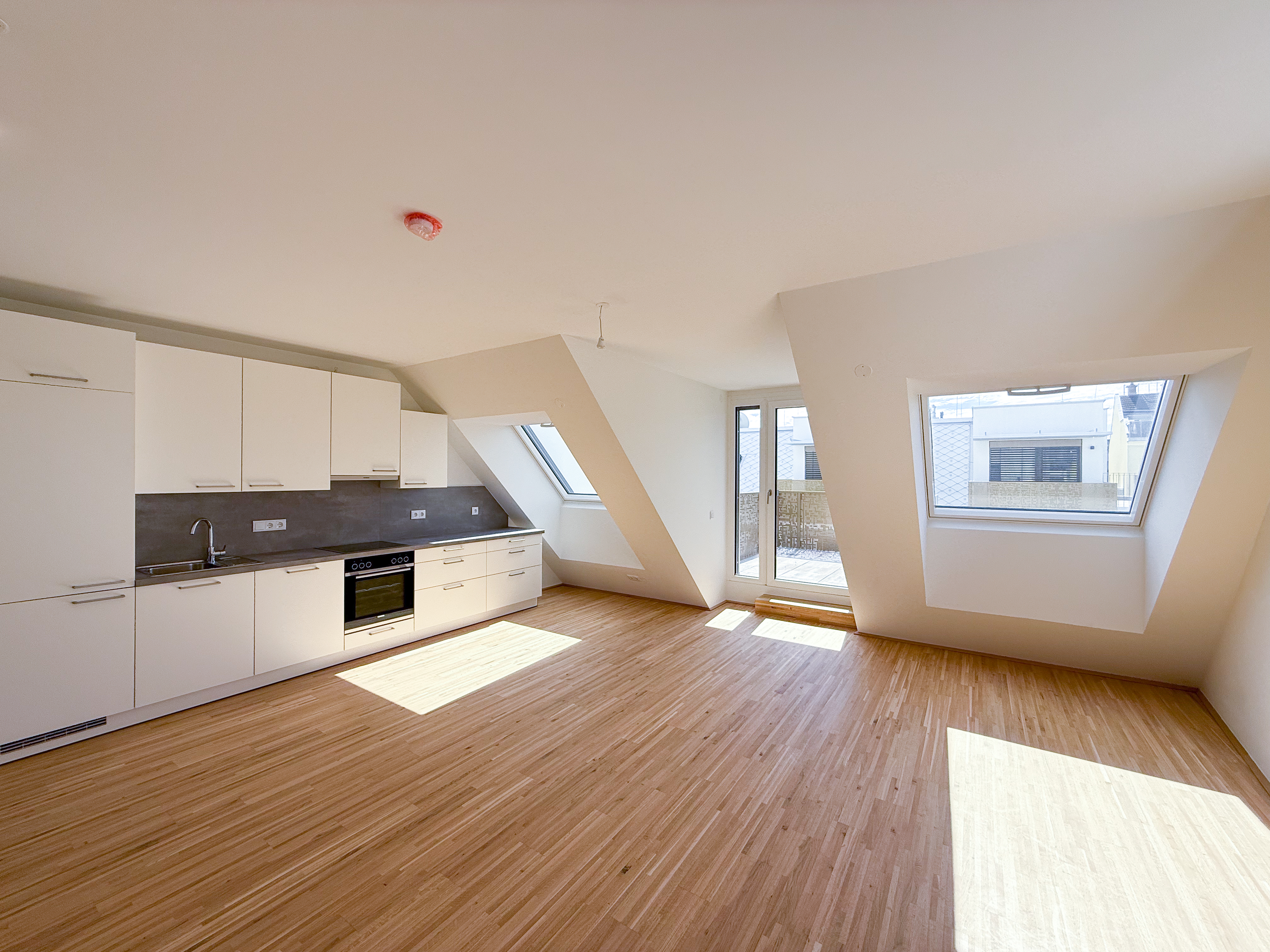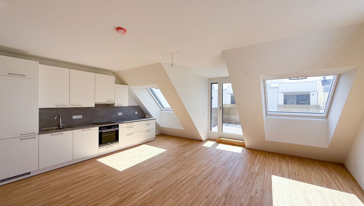 Diese exklusive 4-Zimmer-Dachgeschosswohnung befindet sich im 2. Dachgeschoss des Projekts Am Langen Felde 24 in Kagran und überzeugt durch ihre großzügige Wohnfläche, eine durchdachte Raumaufteilung sowie eine weitläufige Terrasse mit mehreren Ausgängen ins Freie.