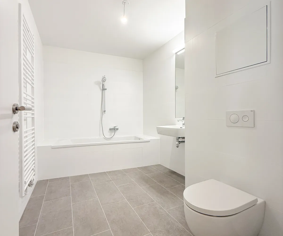 Badezimmer (ca. 7,03 m²) – modern ausgestattet mit Badewanne und Waschmaschinenanschluss