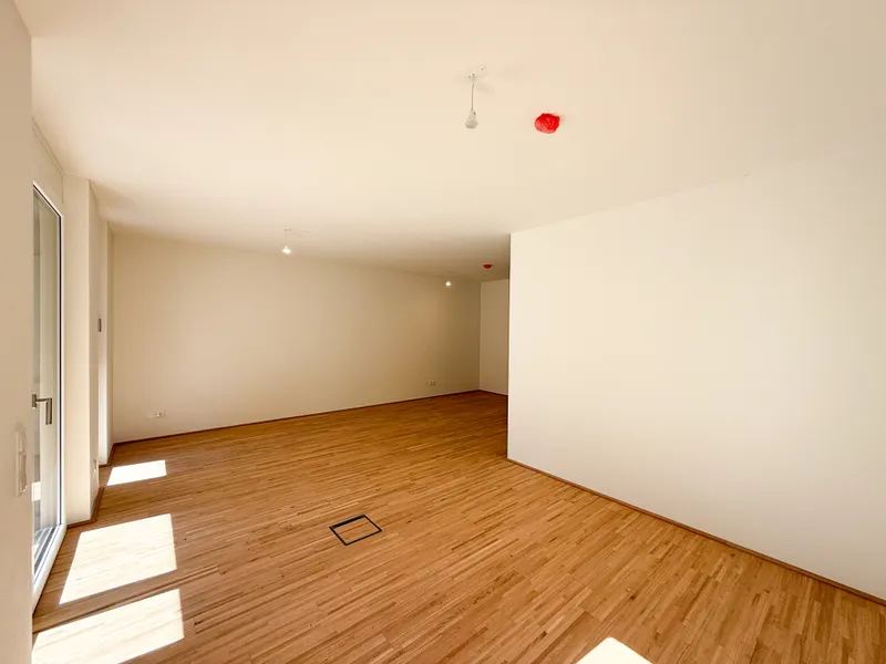 Die Wohnung ist mit hochwertigen Parkettböden in den Wohnräumen, modernen Fliesen in den Nassbereichen sowie zeitgemäßer Haustechnik ausgestattet. Großflächige Fensterflächen mit Sonnenschutz sorgen für viel Tageslicht und ein angenehmes Wohngefühl. Das Gebäude bietet außerdem Fahrradabstellplätze , Kinderwagenräume und ein begrüntes Flachdach .