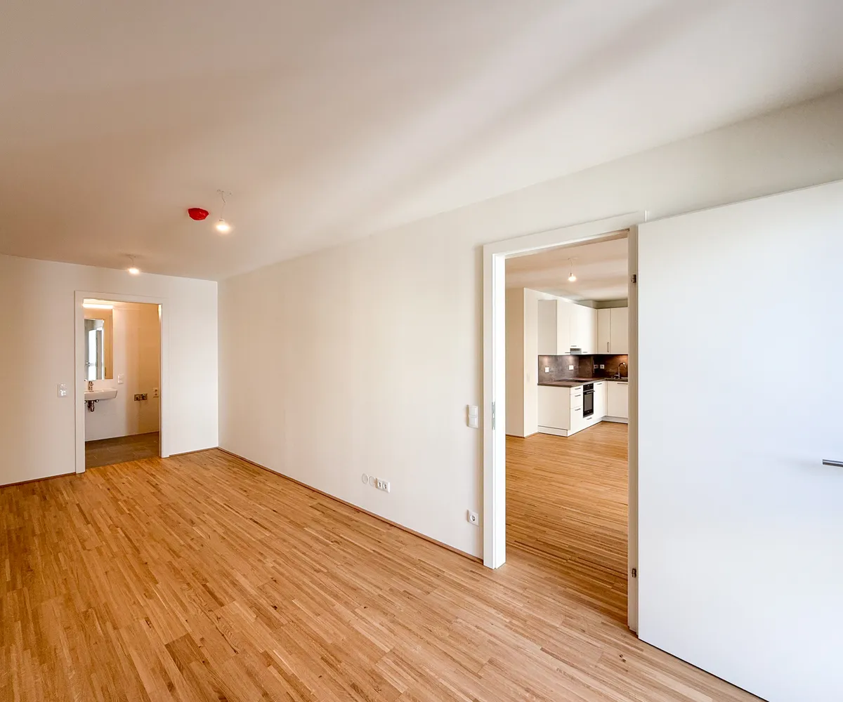 Die Wohnungen wurden im Jahr 2023 fertiggestellt und sind ab sofort bezugsfertig. Im Vordergrund steht ein durchdachtes Konzept, das kompakte 2-Zimmer-Wohnungen – ideal für Anleger:innen – mit großzügigeren Familienwohnungen kombiniert. Jede Einheit verfügt über eine private Freifläche wie Balkon, Terrasse, Loggia oder Eigengarten.