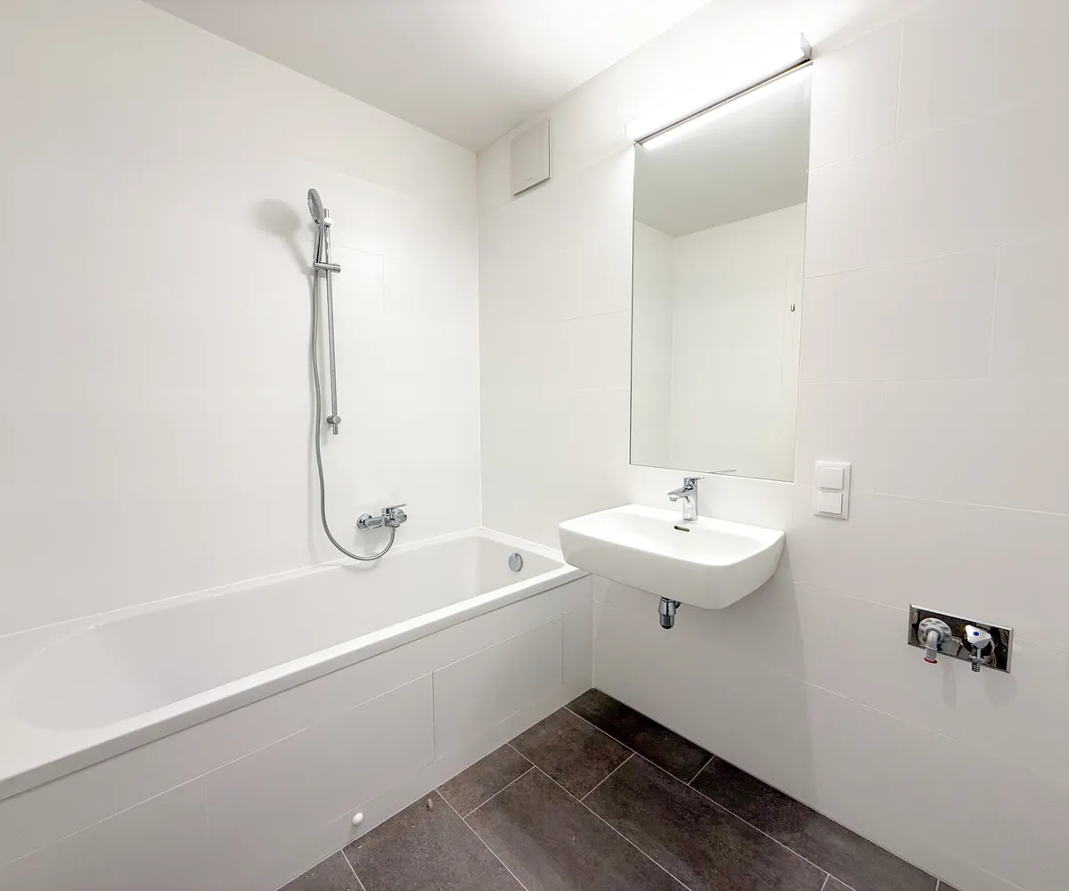 Badezimmer (ca. 4,72 m²) – modern ausgestattet mit Badewanne und Waschmaschinenanschluss