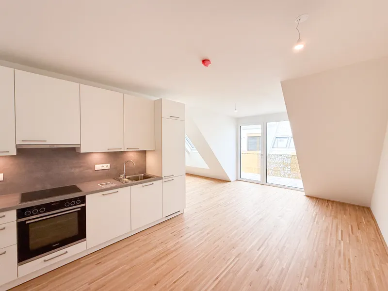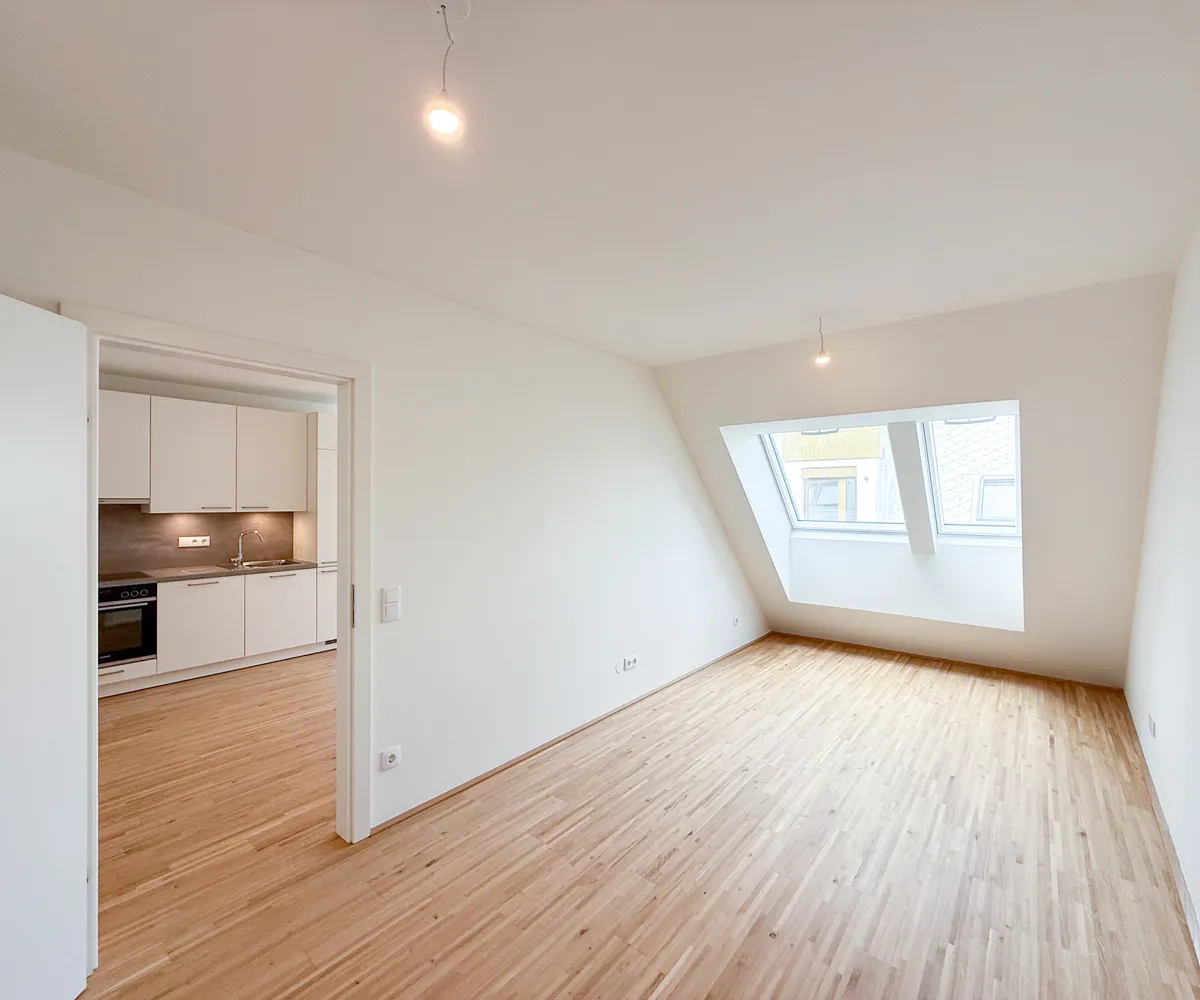 Diese einladende 2-Zimmer-Wohnung befindet sich im 1. Dachgeschoss des Projekts Am Langen Felde 24 in Kagran und überzeugt durch ihre helle Wohnküche, eine durchdachte Raumaufteilung sowie einen großzügigen Balkon.