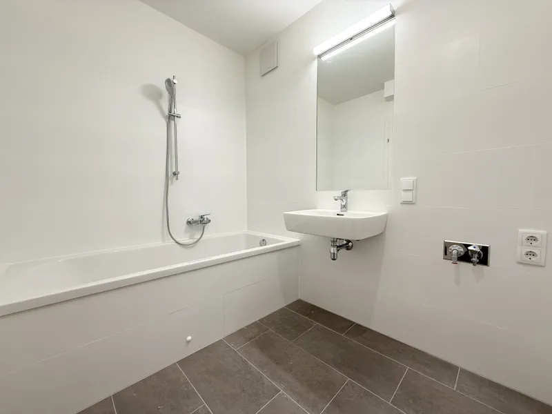 Badezimmer (ca. 4,70 m²) – modern ausgestattet mit Badewanne und Waschmaschinenanschluss
