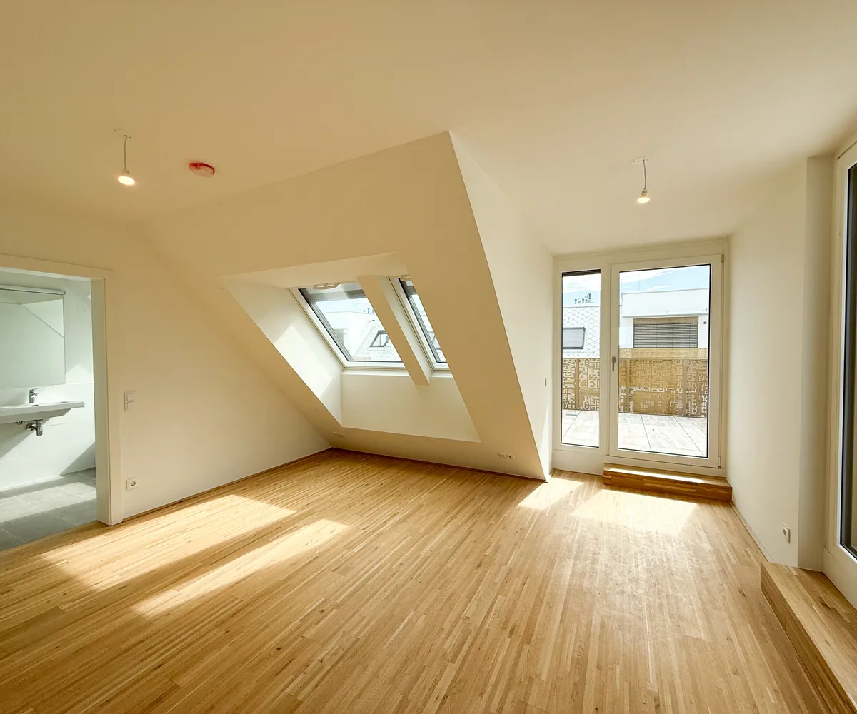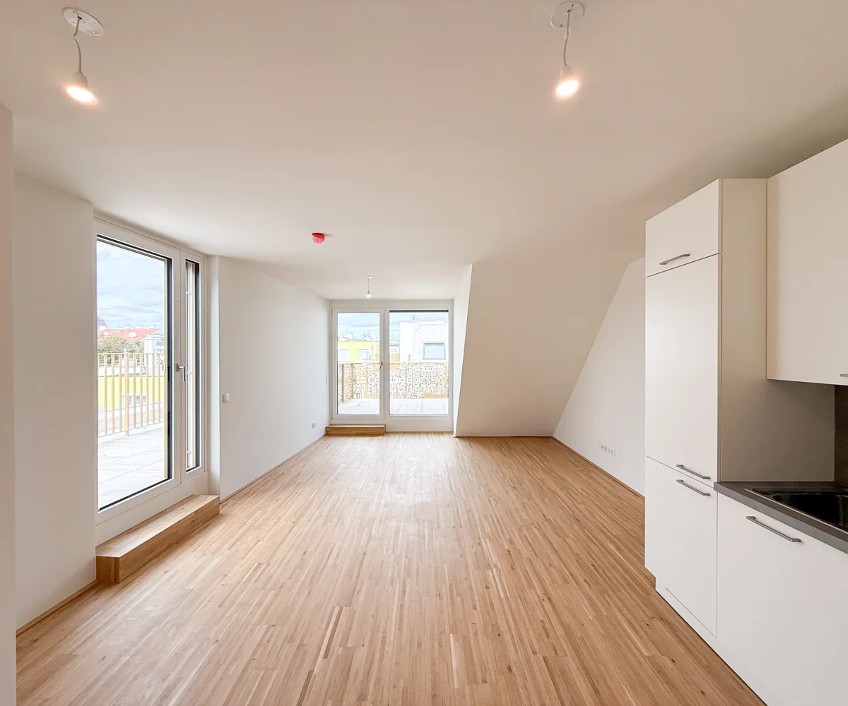 Diese exklusive 4-Zimmer-Wohnung befindet sich im 2. Dachgeschoss des Projekts Am Langen Felde 24 in Kagran und überzeugt durch ihre großzügige Wohnfläche, helle Räume sowie eine weitläufige Terrasse mit idealer Süd-/Westausrichtung.