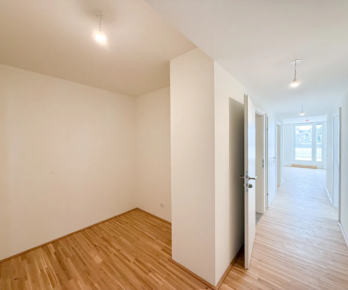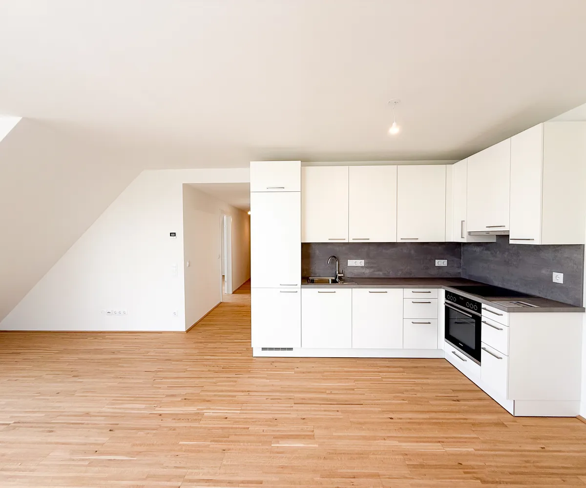 Die Wohnungen wurden im Jahr 2023 fertiggestellt und sind ab sofort bezugsfertig. Im Vordergrund steht ein durchdachtes Konzept, das kompakte 2-Zimmer-Wohnungen – ideal für Anleger:innen – mit großzügigeren Familienwohnungen kombiniert. Jede Einheit verfügt über eine private Freifläche wie Balkon, Terrasse, Loggia oder Eigengarten.