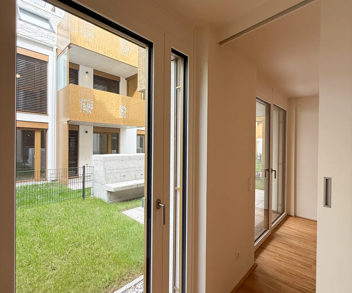 Die Wohnungen wurden im Jahr 2023 fertiggestellt und sind ab sofort bezugsfertig. Im Vordergrund steht ein durchdachtes Konzept, das kompakte 2-Zimmer-Wohnungen – ideal für Anleger:innen – mit großzügigeren Familienwohnungen kombiniert. Jede Einheit verfügt über eine private Freifläche wie Balkon, Terrasse, Loggia oder Eigengarten.