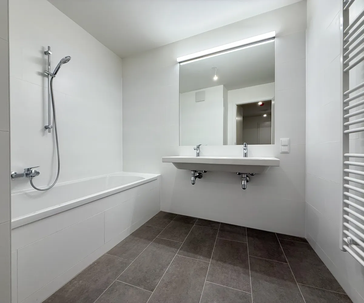 Badezimmer (ca. 5,34 m²) – modern ausgestattet mit Badewanne und Waschmaschinenanschluss