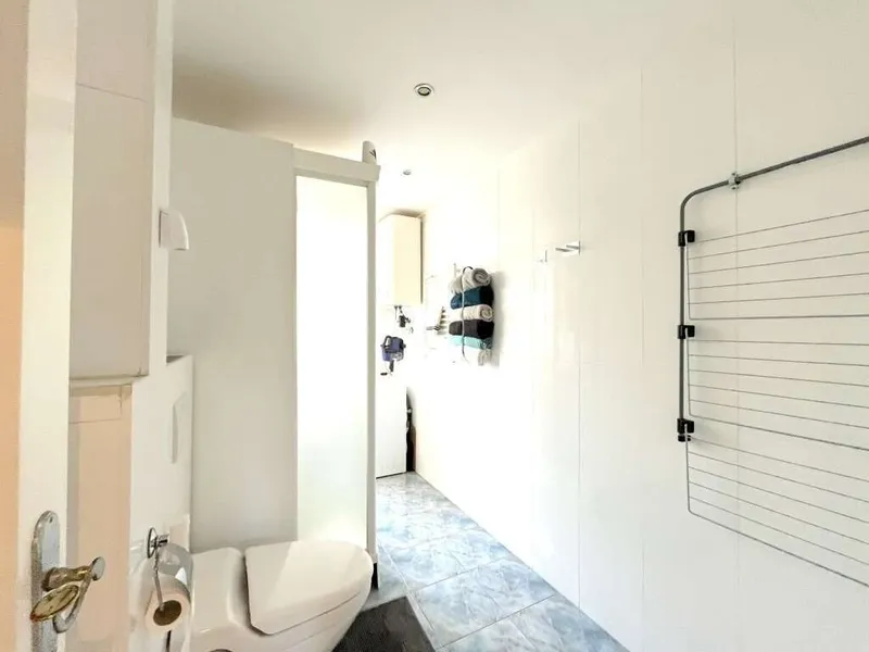DIe Wohnung befindet sich in einem sehr guten Zustand. Sollten Sie dennoch etwas umbauen wollen, könnten Sie bei der Verlegung der Küche in den Wohn- und Schlafraum, ein Kabinett für ein separates Schlafzimmer erschaffen und hätten somit eine 2 Zimmer Wohnung, was durchaus besser in der Vermietung noch ankommen würde.